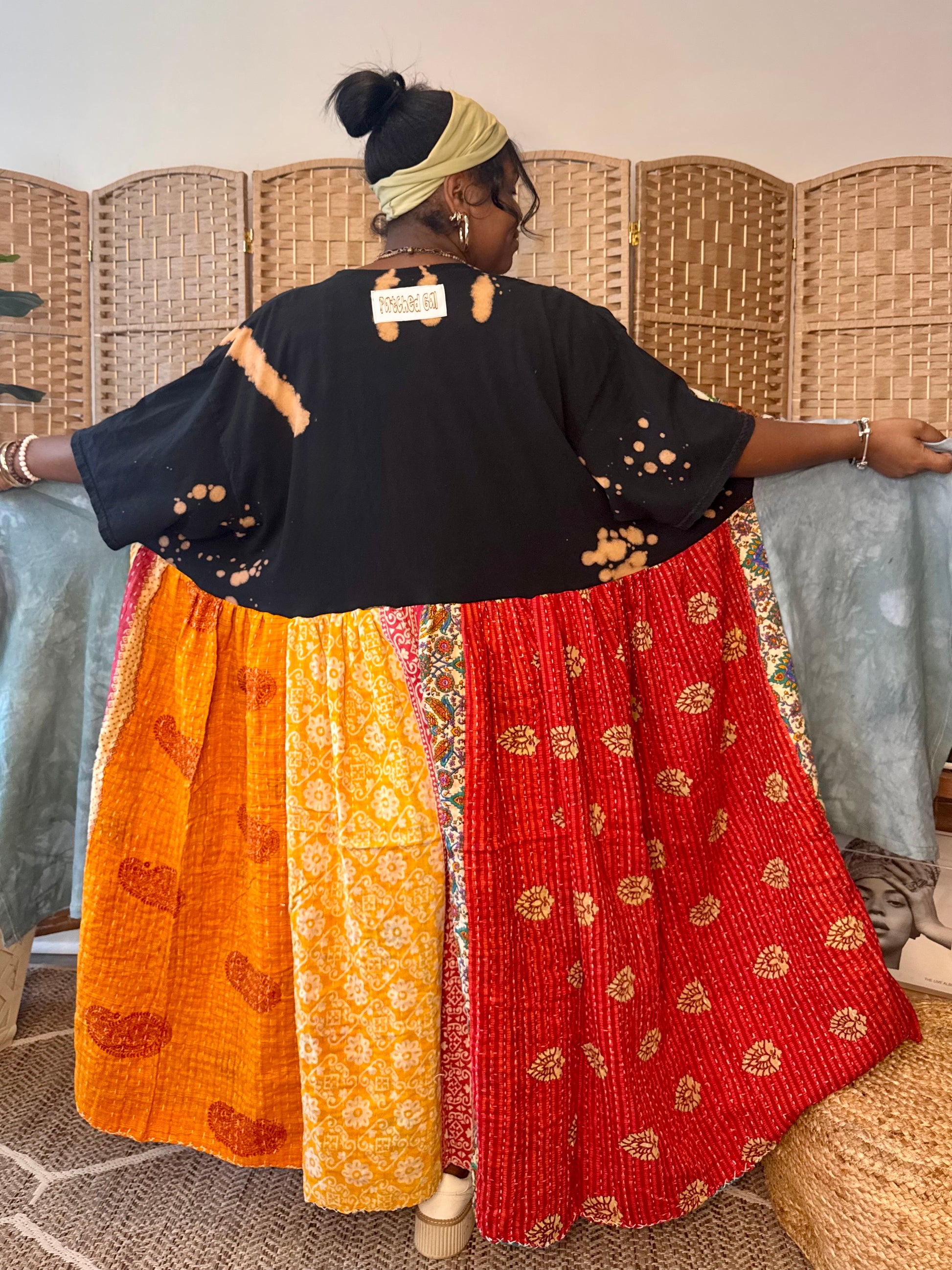 - All fabrics are hand arranged and cut into pieces to make a beautiful skirt.