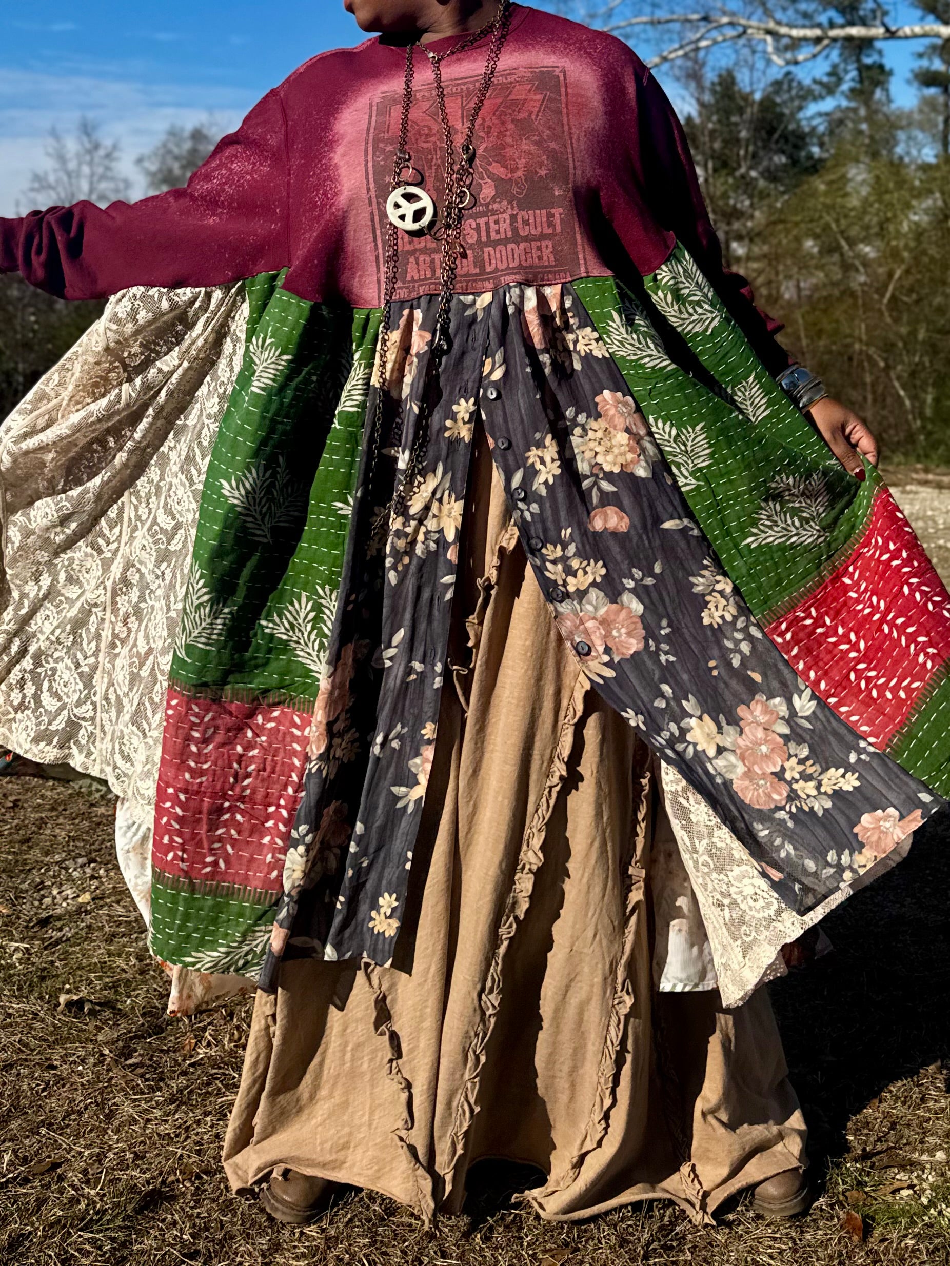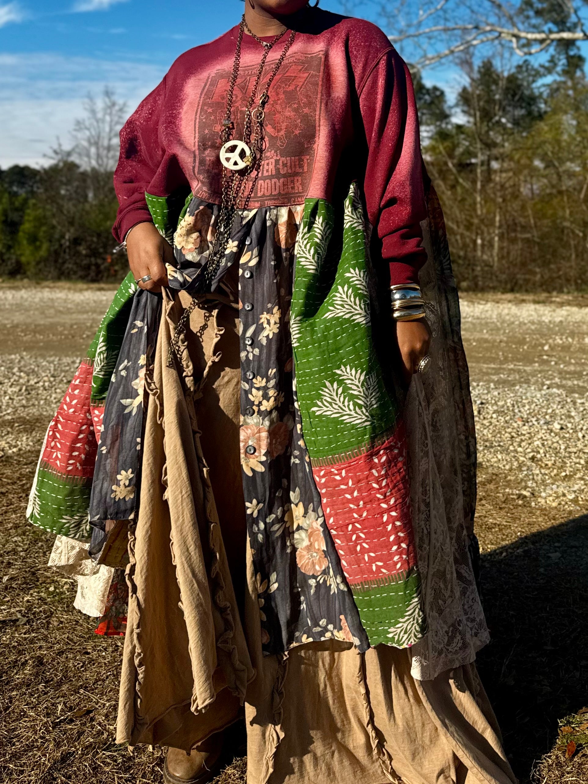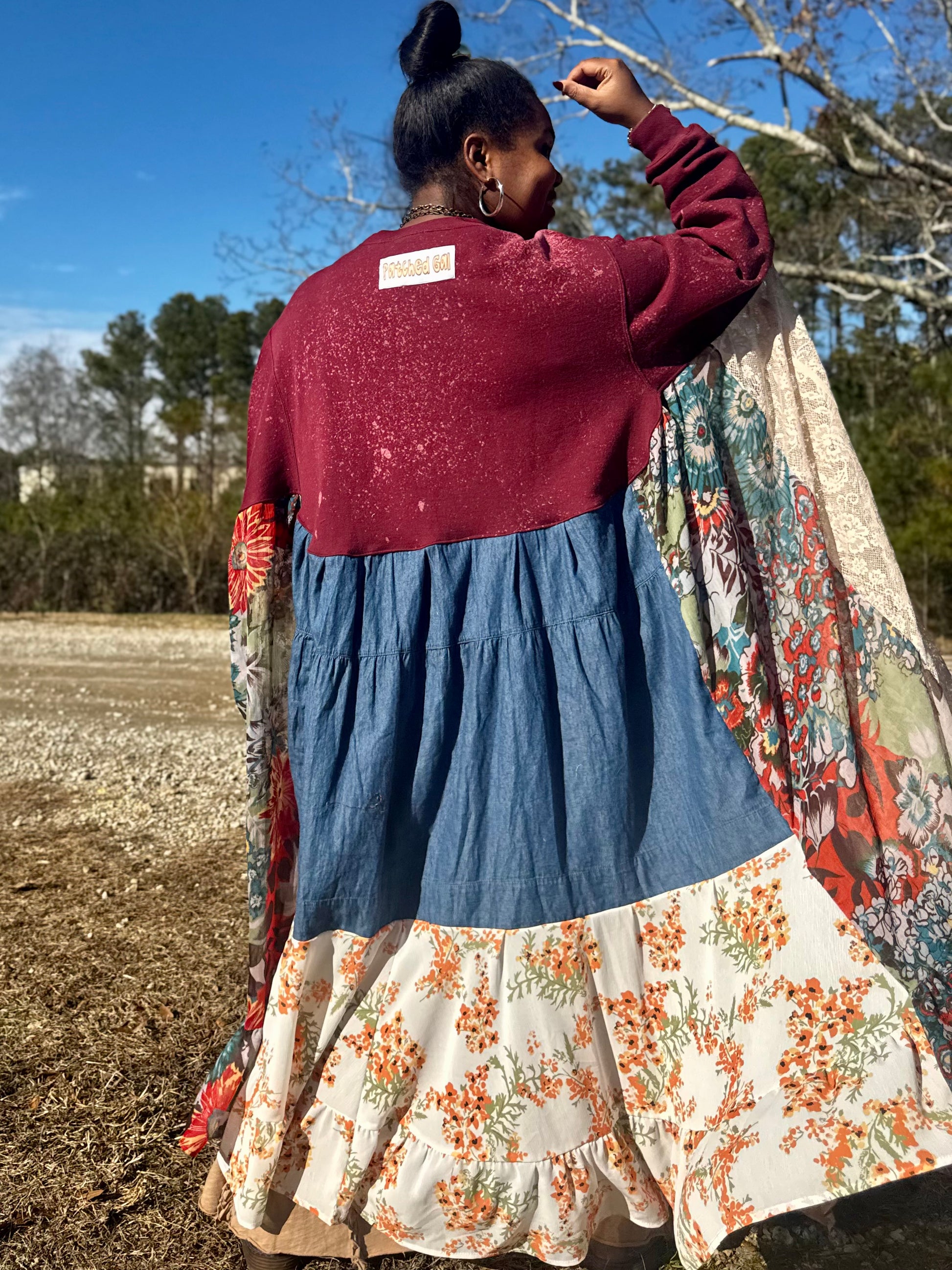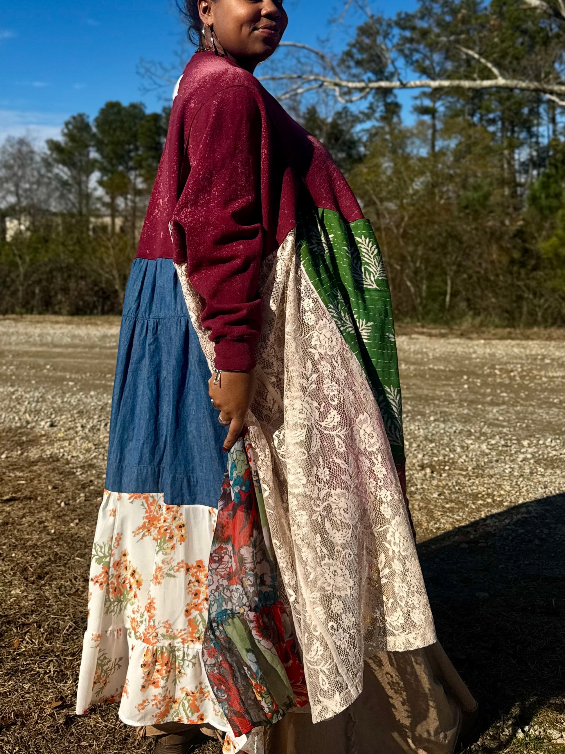 - All fabrics are hand arranged and cut into pieces to make a beautiful skirt.