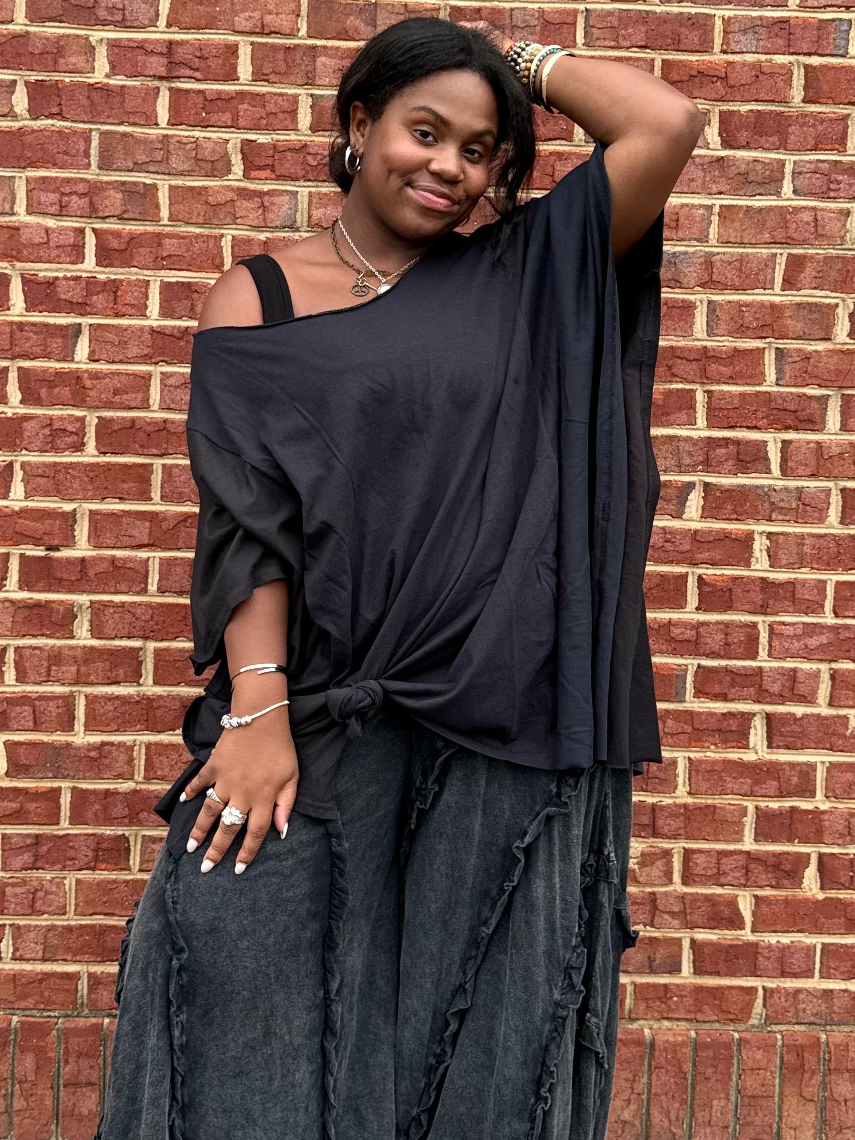 - Sierra is 5'4, usually a size large and can fit all of the poncho tees.