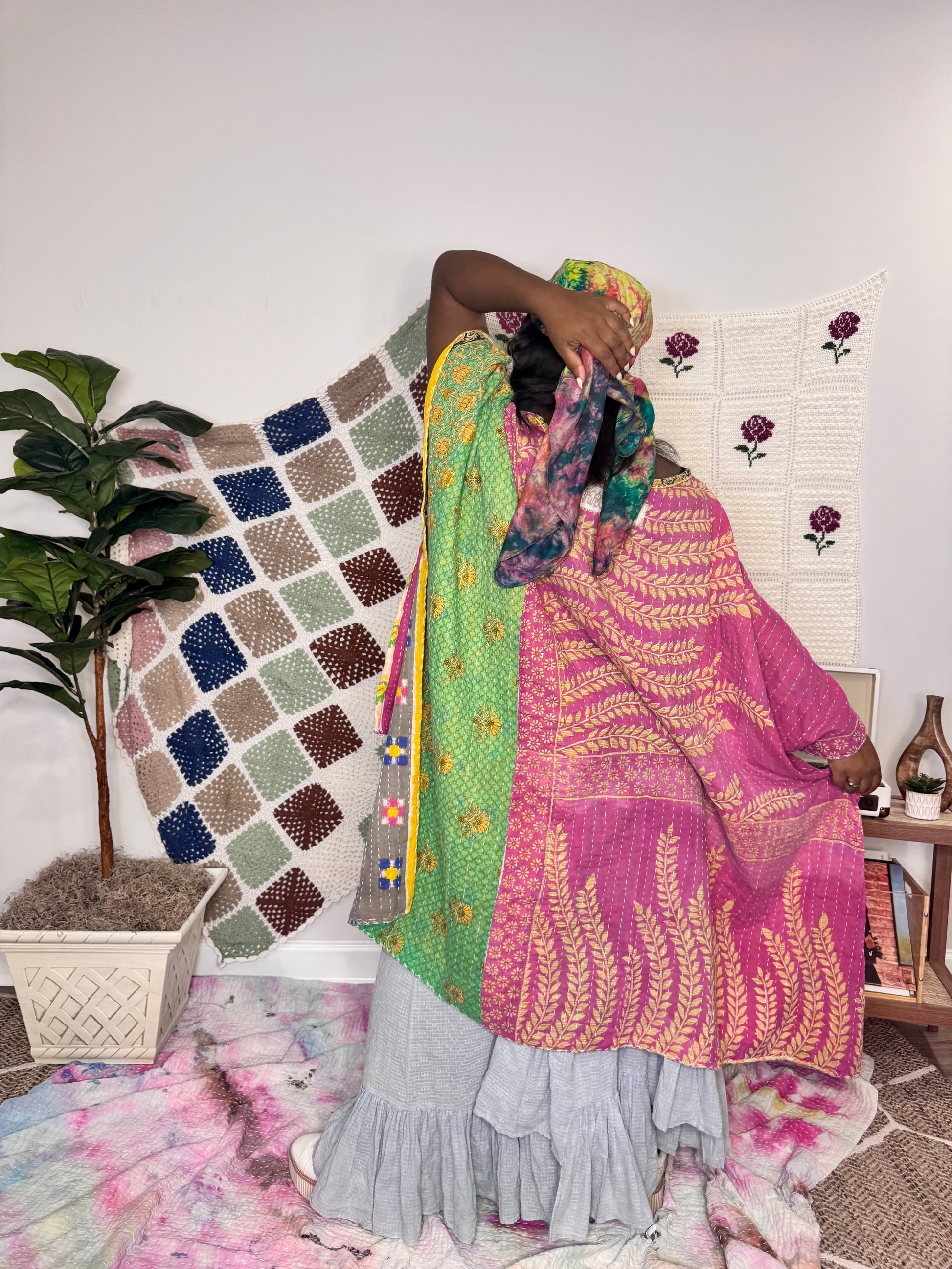 - All fabrics are hand arranged and cut into pieces to make a beautiful top.