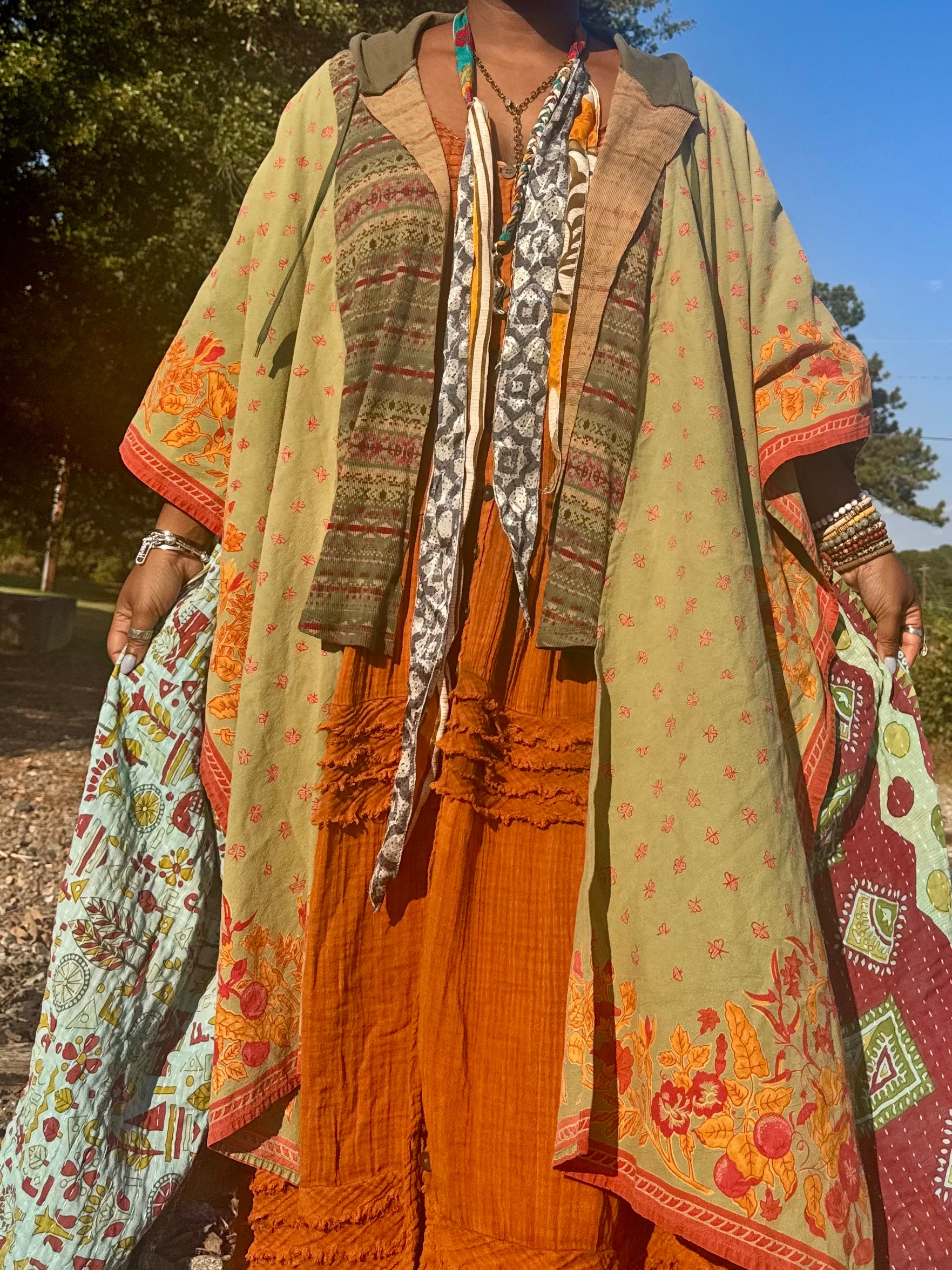 - Upcycled from a hoodie, Kantha and fabrics hand sourced in Bali.