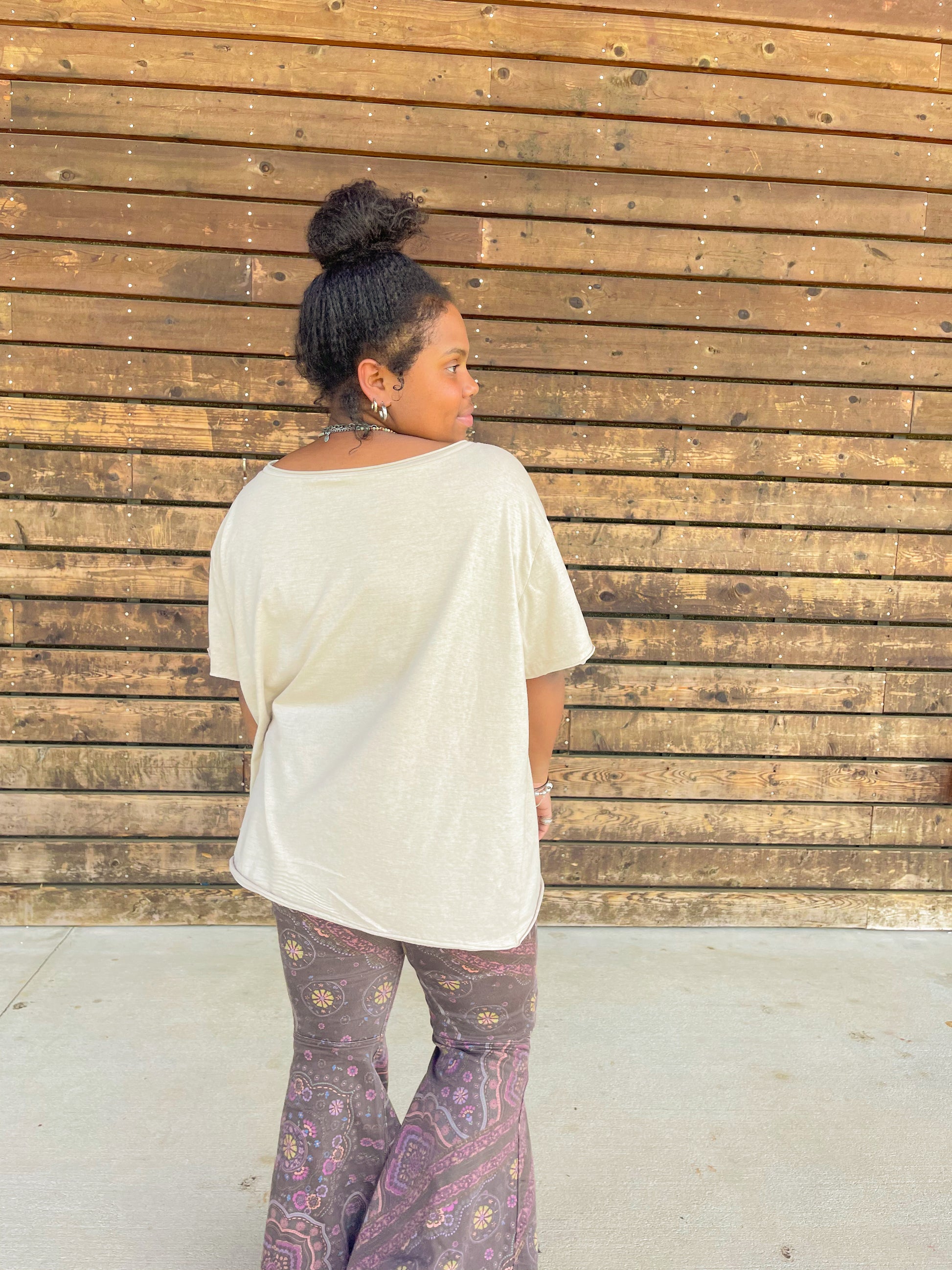 - Oversized boat neck boyfriend tshirt.