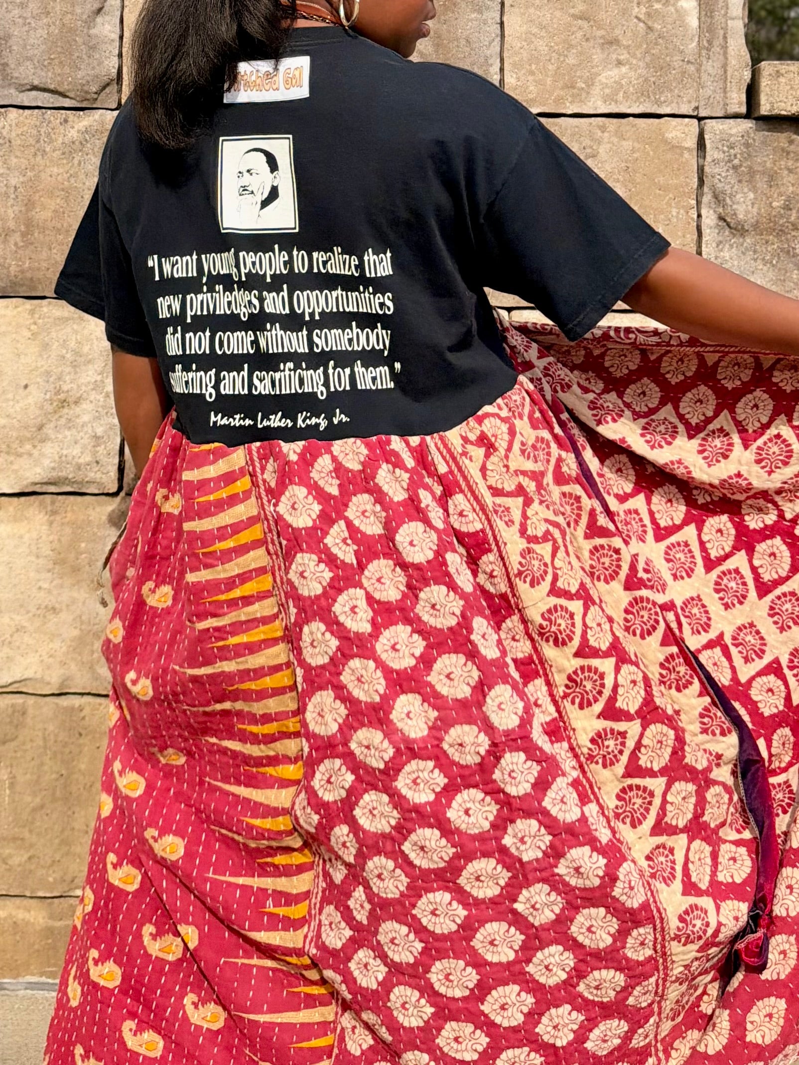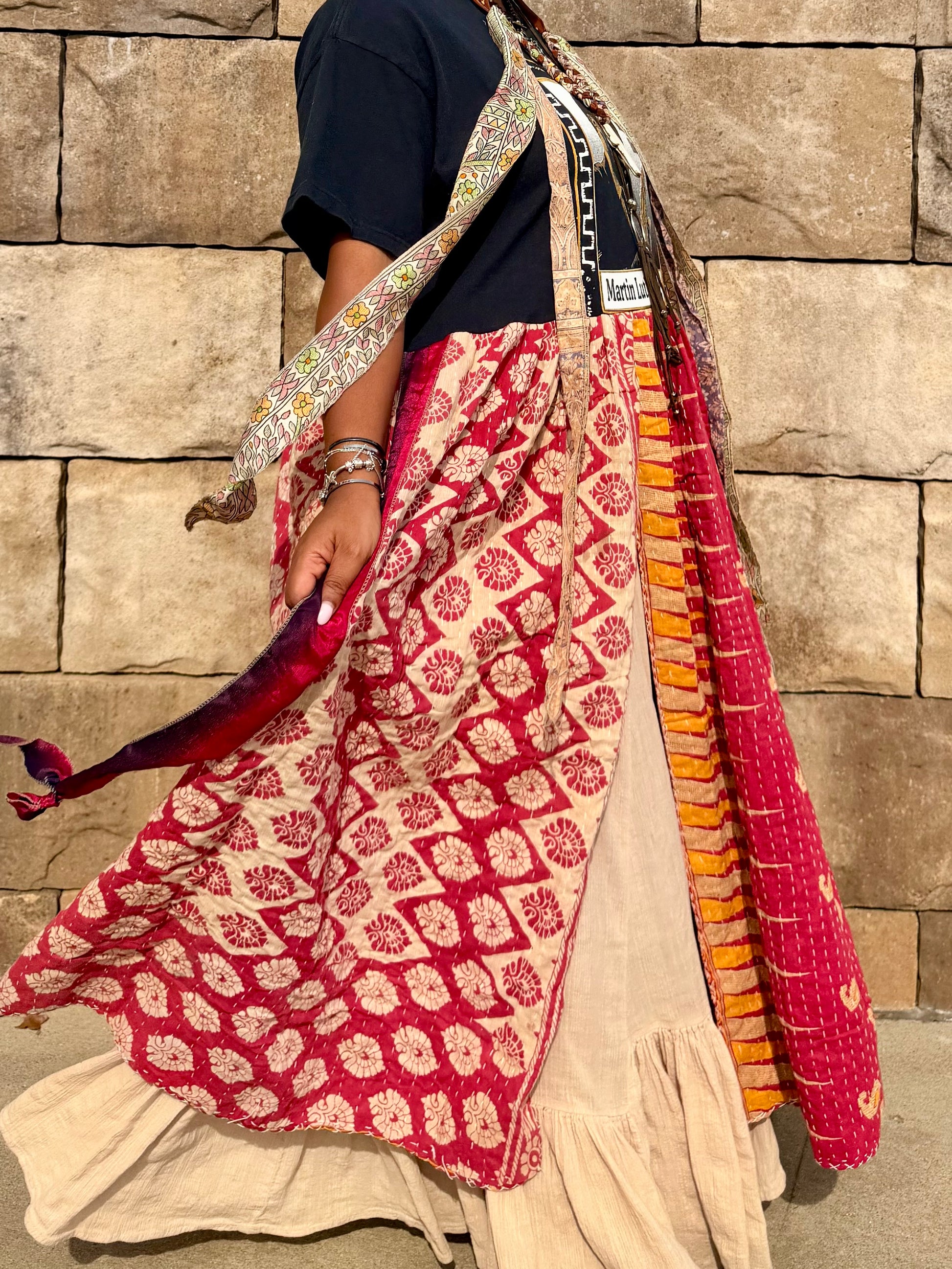 - All fabrics are hand arranged and cut into pieces to make a beautiful skirt.