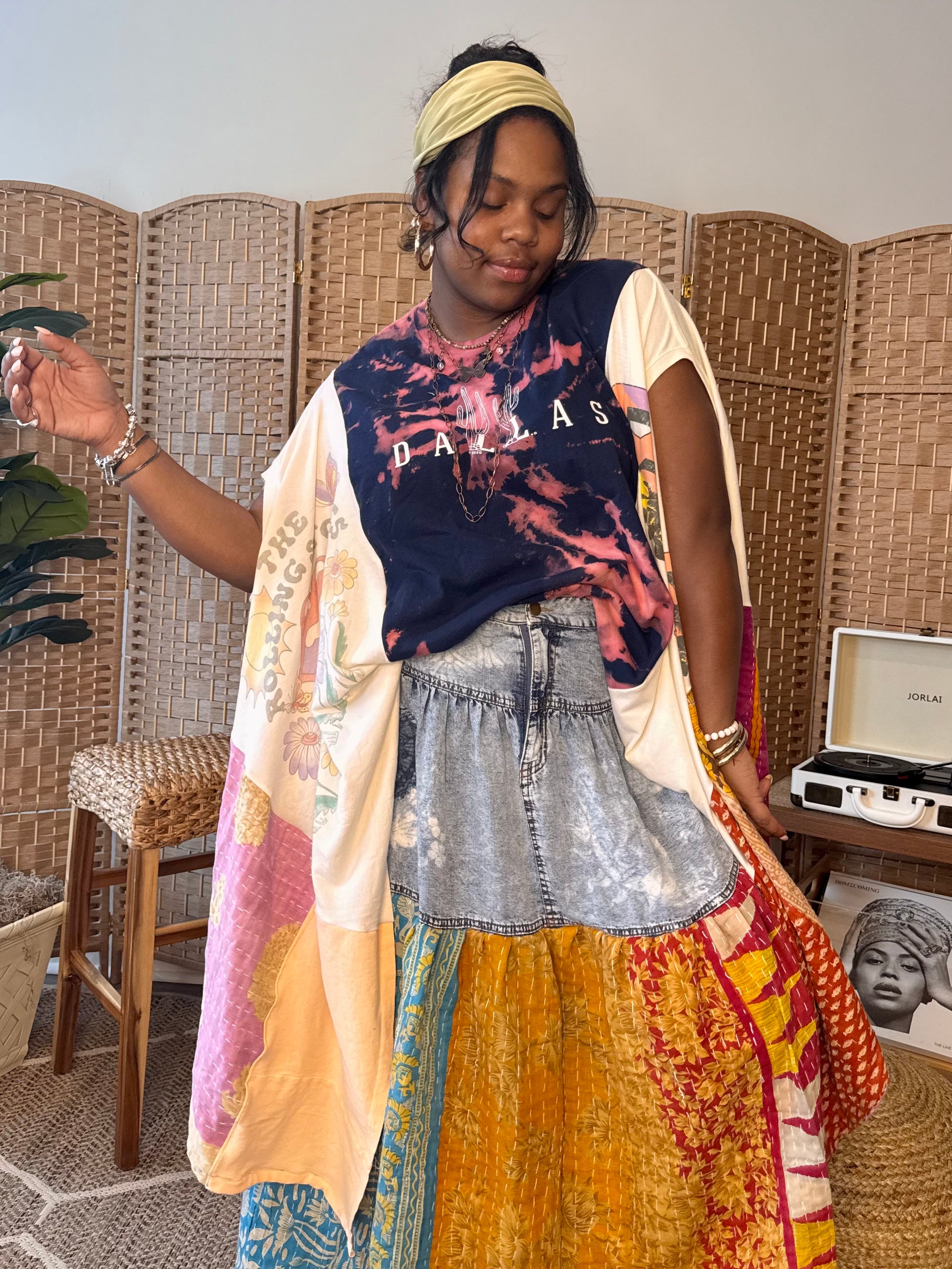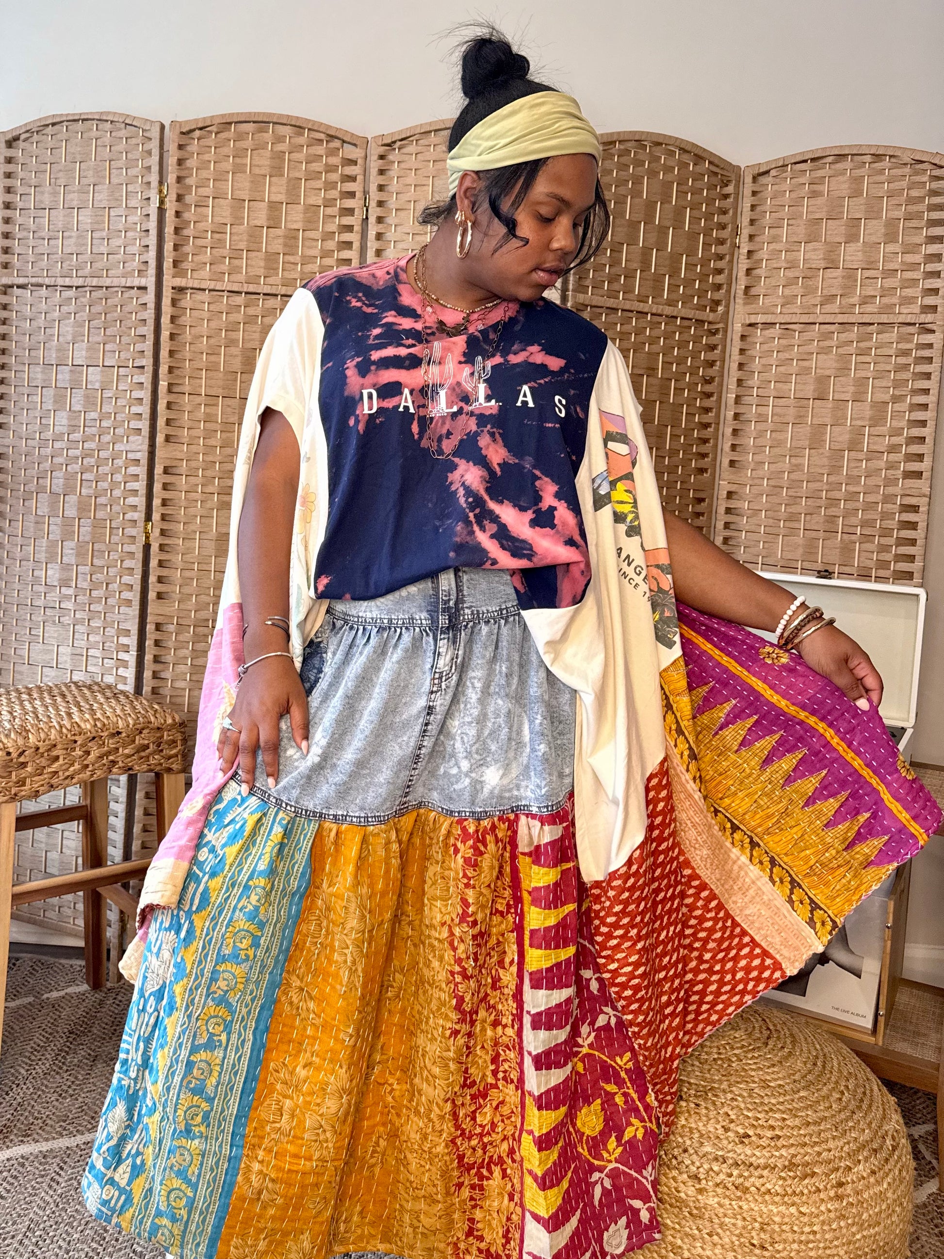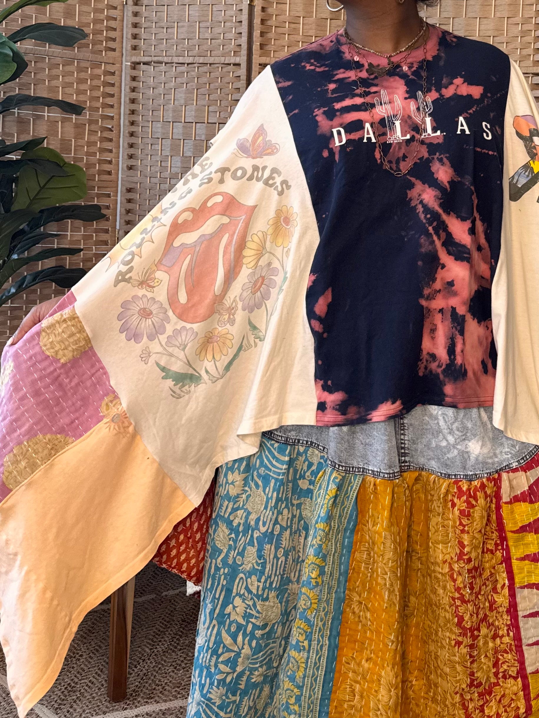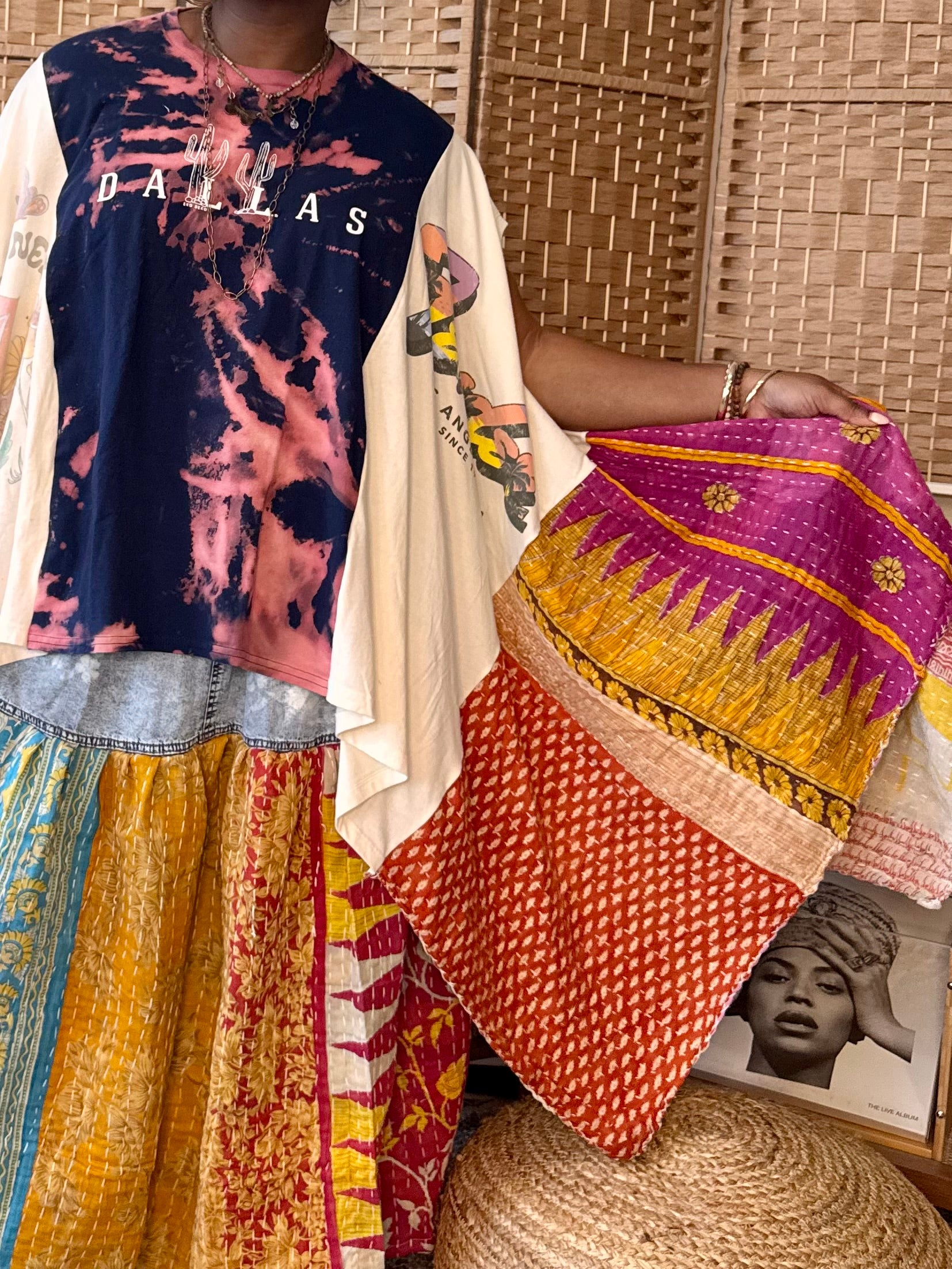 - All fabrics are hand arranged and cut into pieces to make a beautiful top.