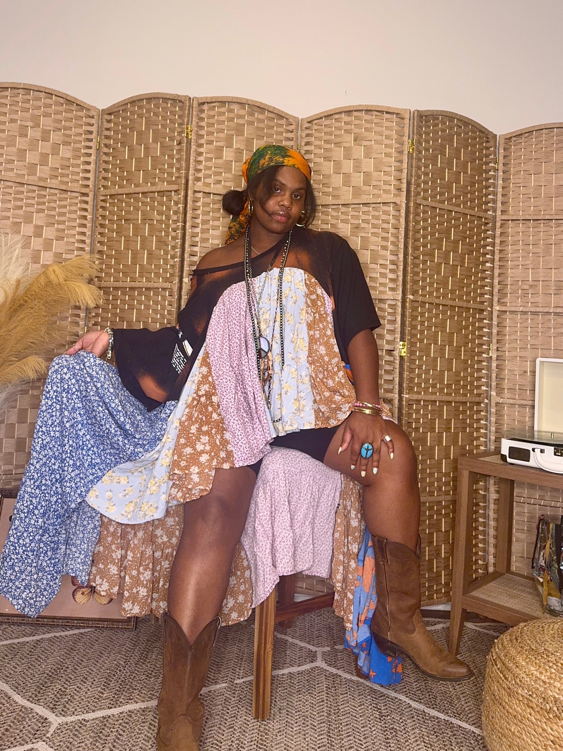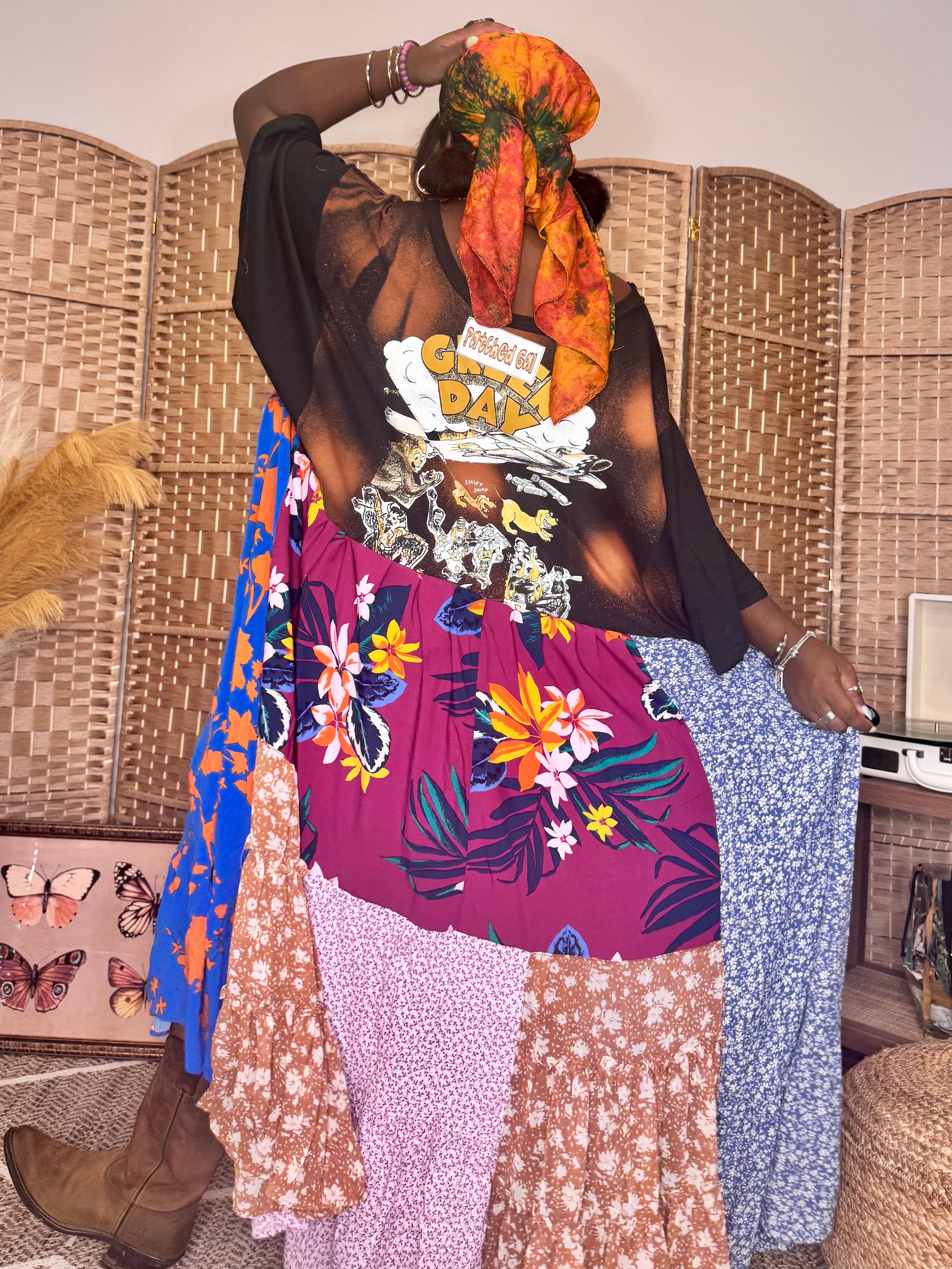 - All fabrics are hand arranged and cut into pieces to make a beautiful skirt.