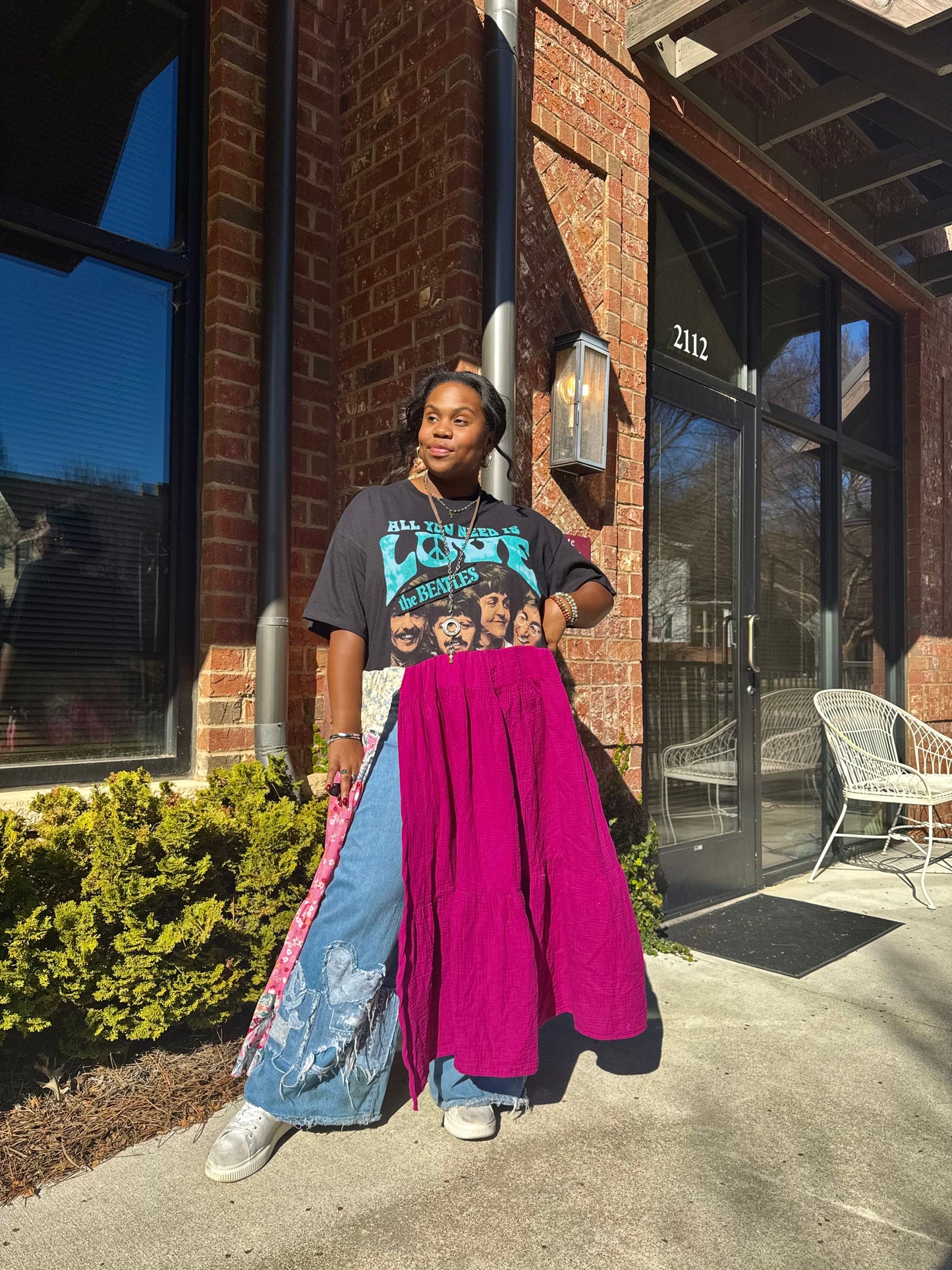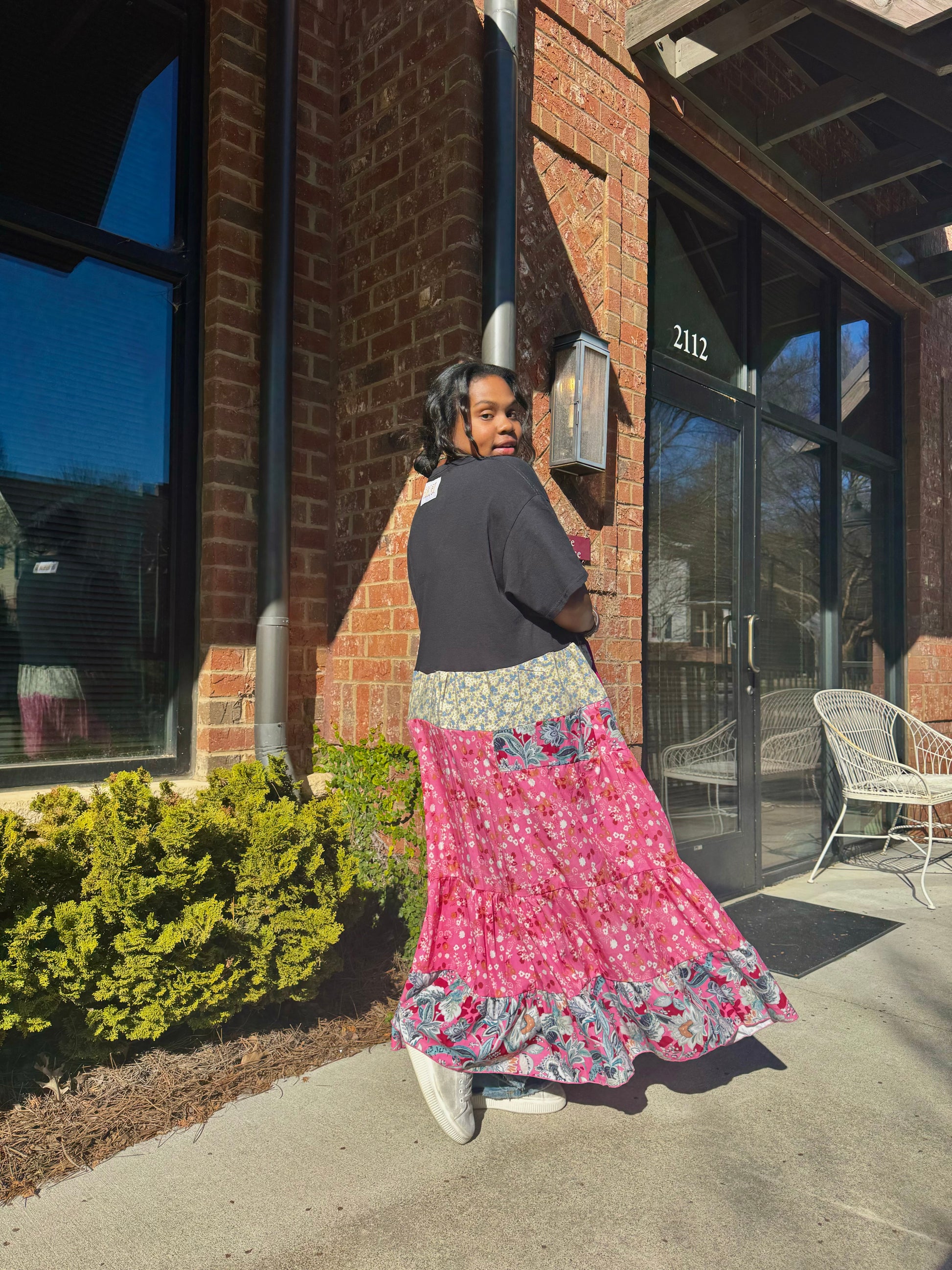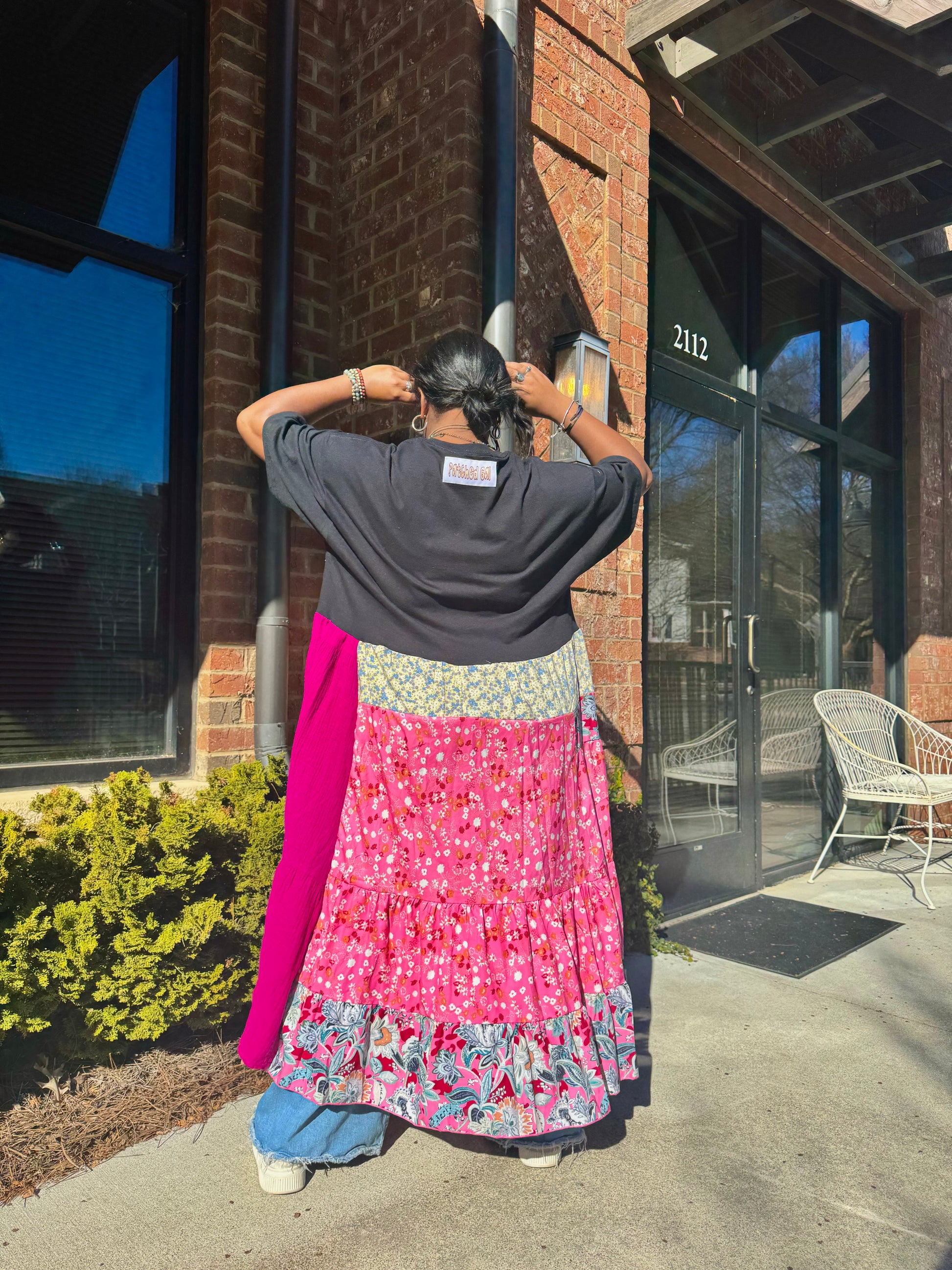 - All fabrics are hand arranged and cut into pieces to make a beautiful skirt.