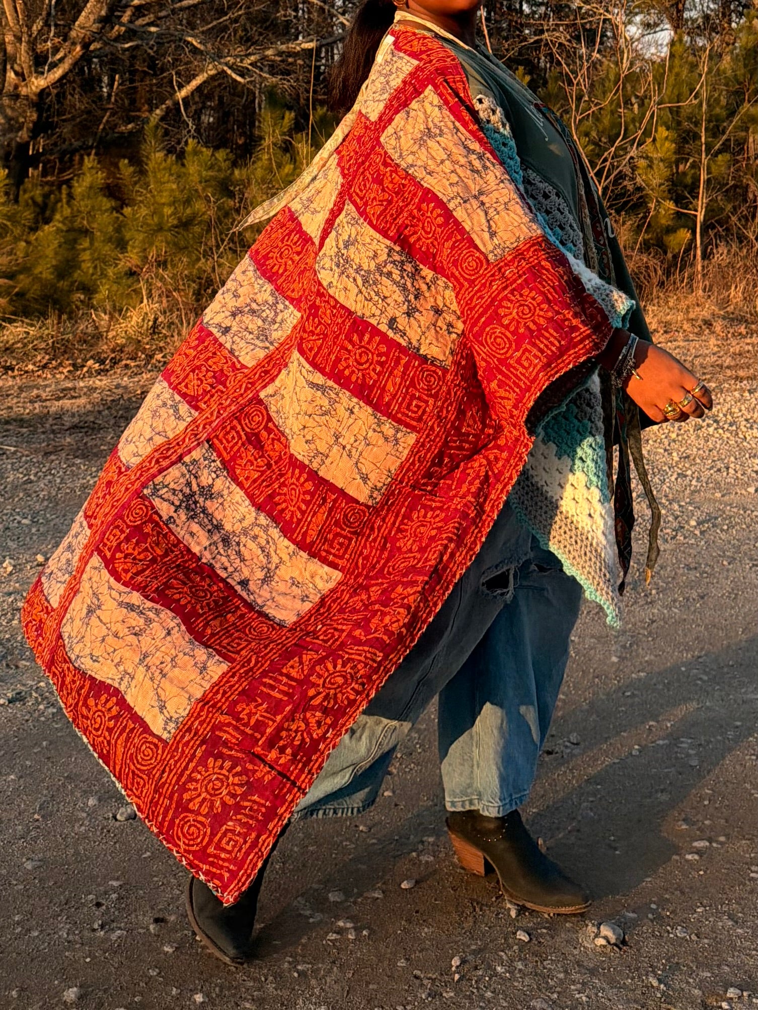 - All fabrics are hand arranged and cut into pieces to make a beautiful top.