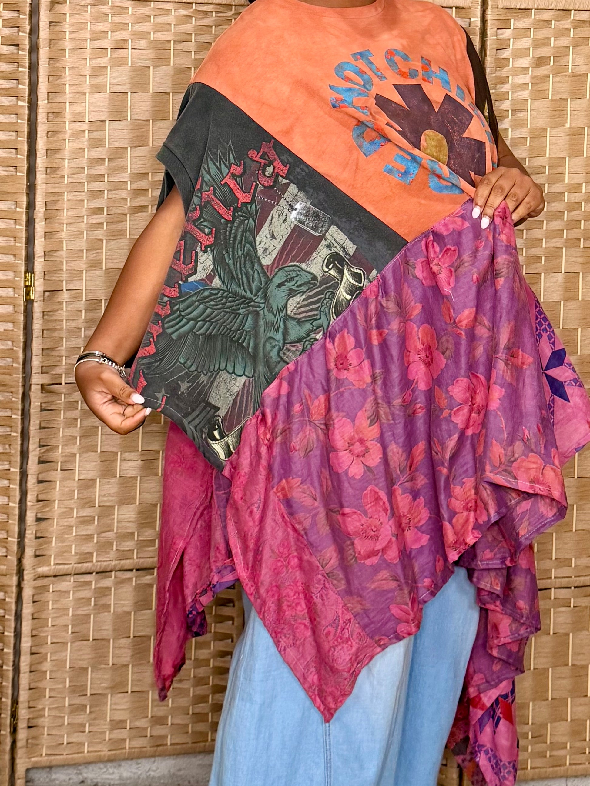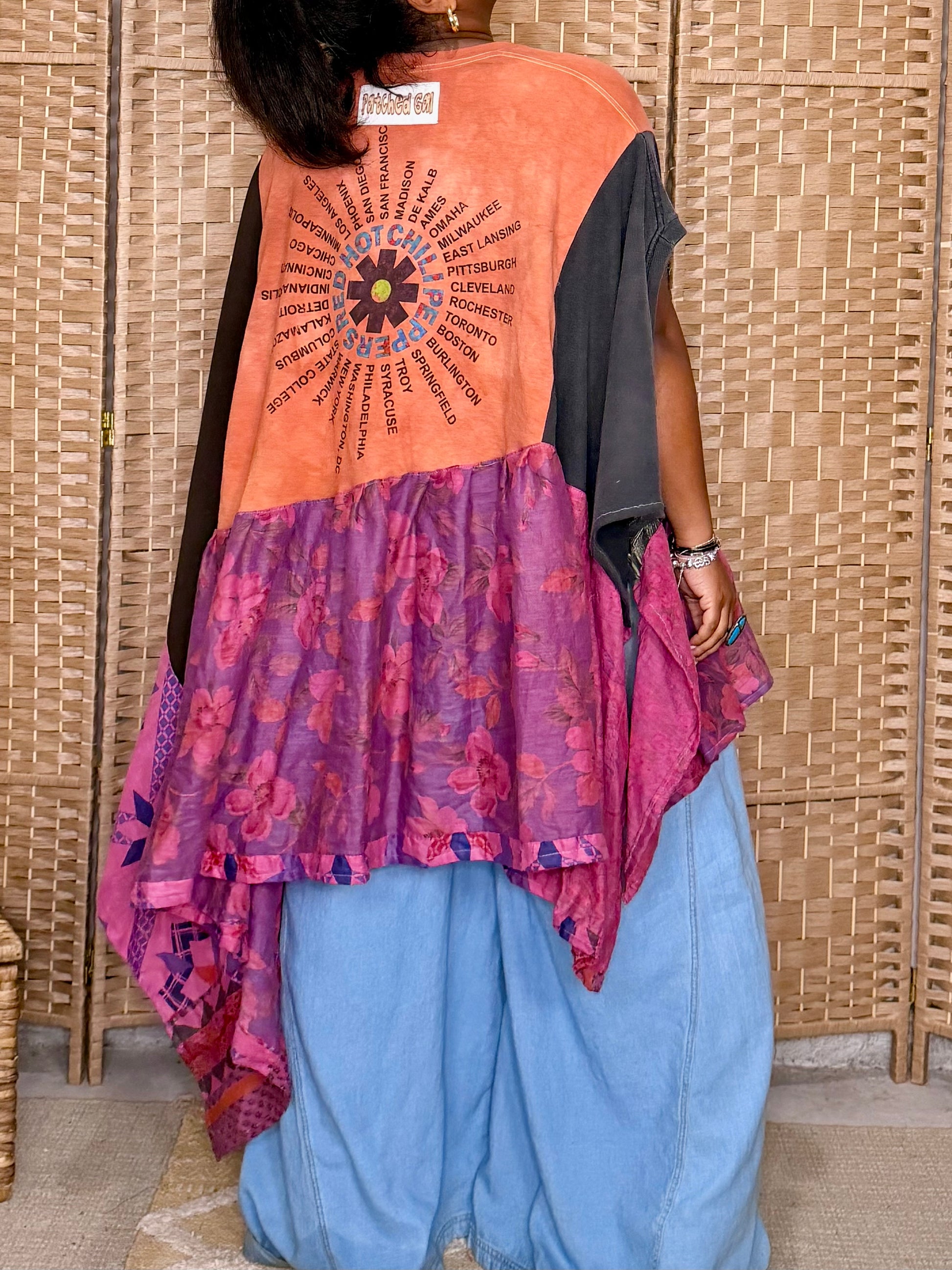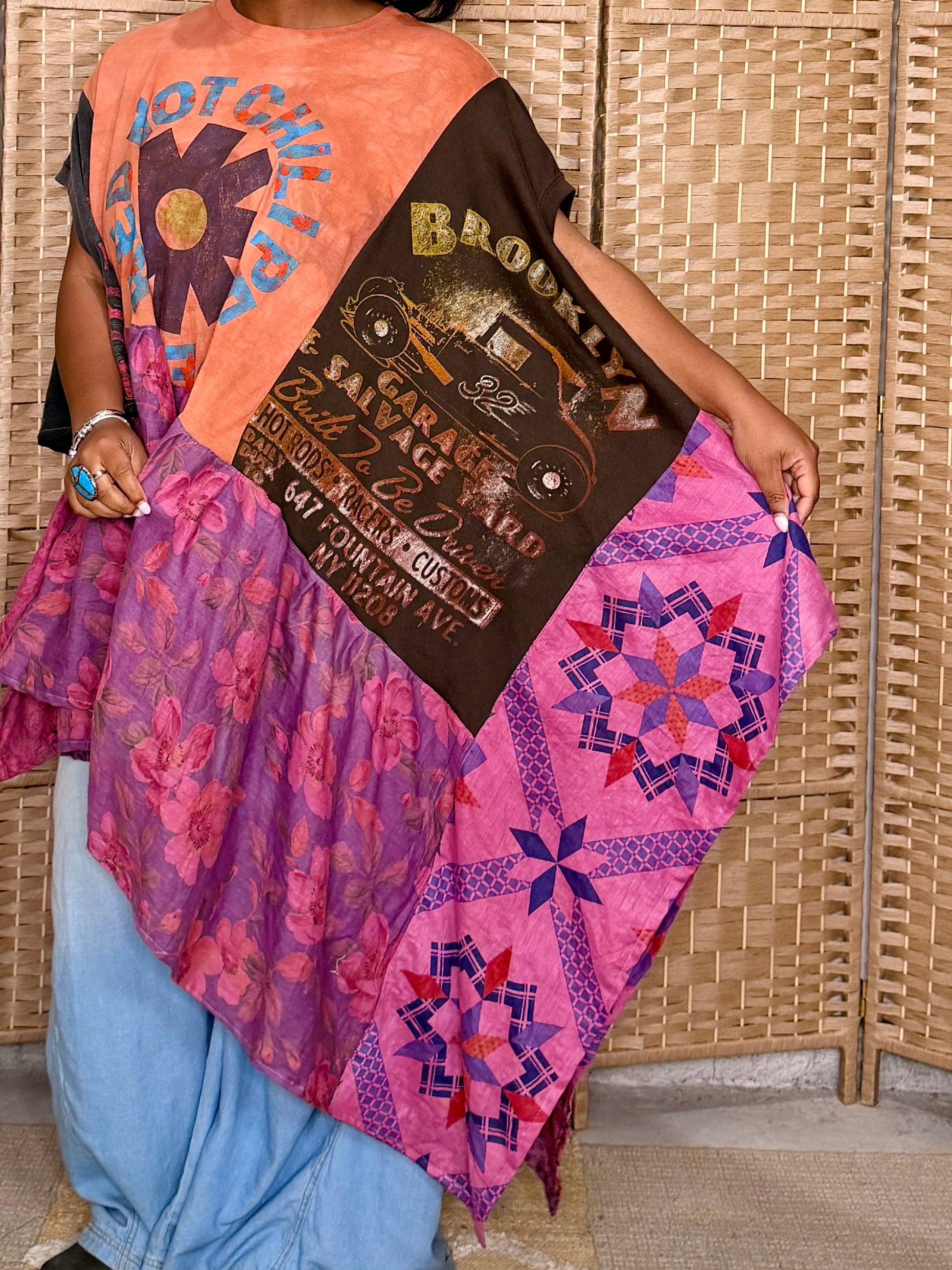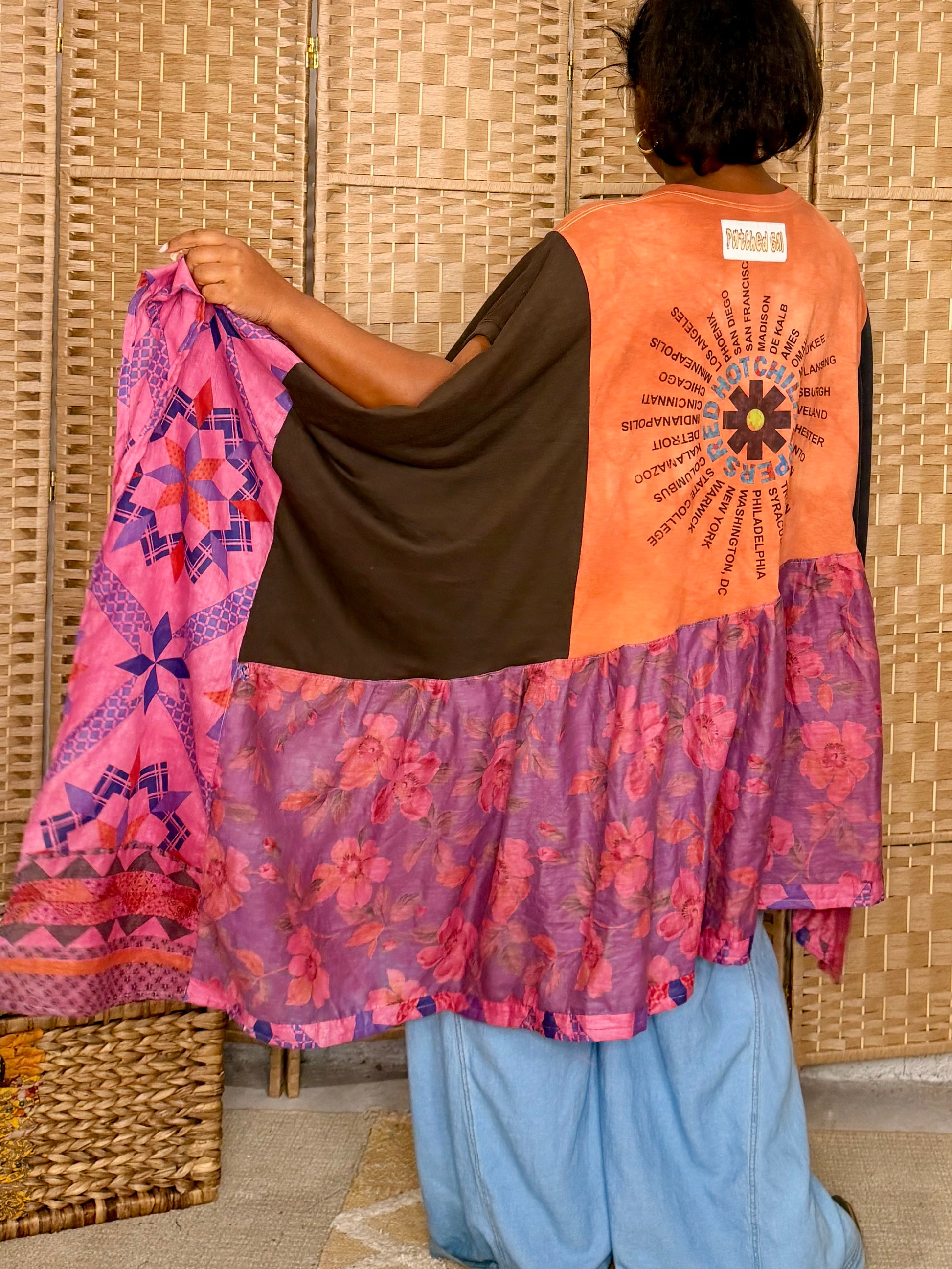 - Made with 3 tshirts and patchwork fabric.