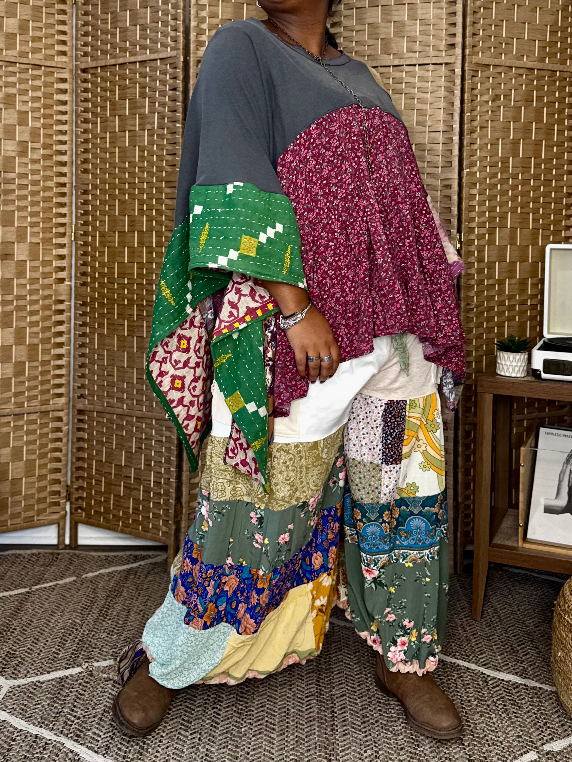 - All fabrics are hand-cut and arranged to make a beautiful patchwork silhouette.
