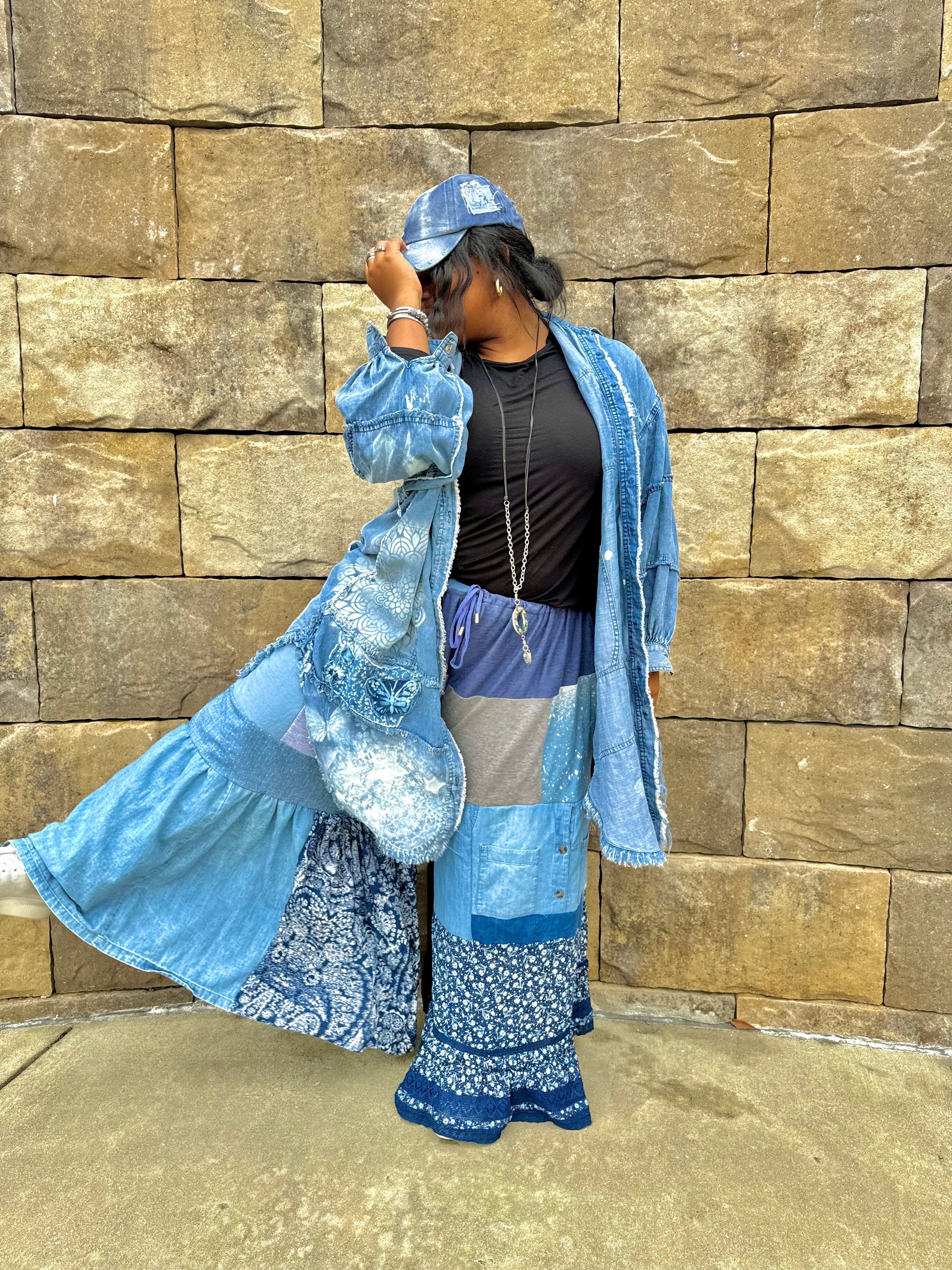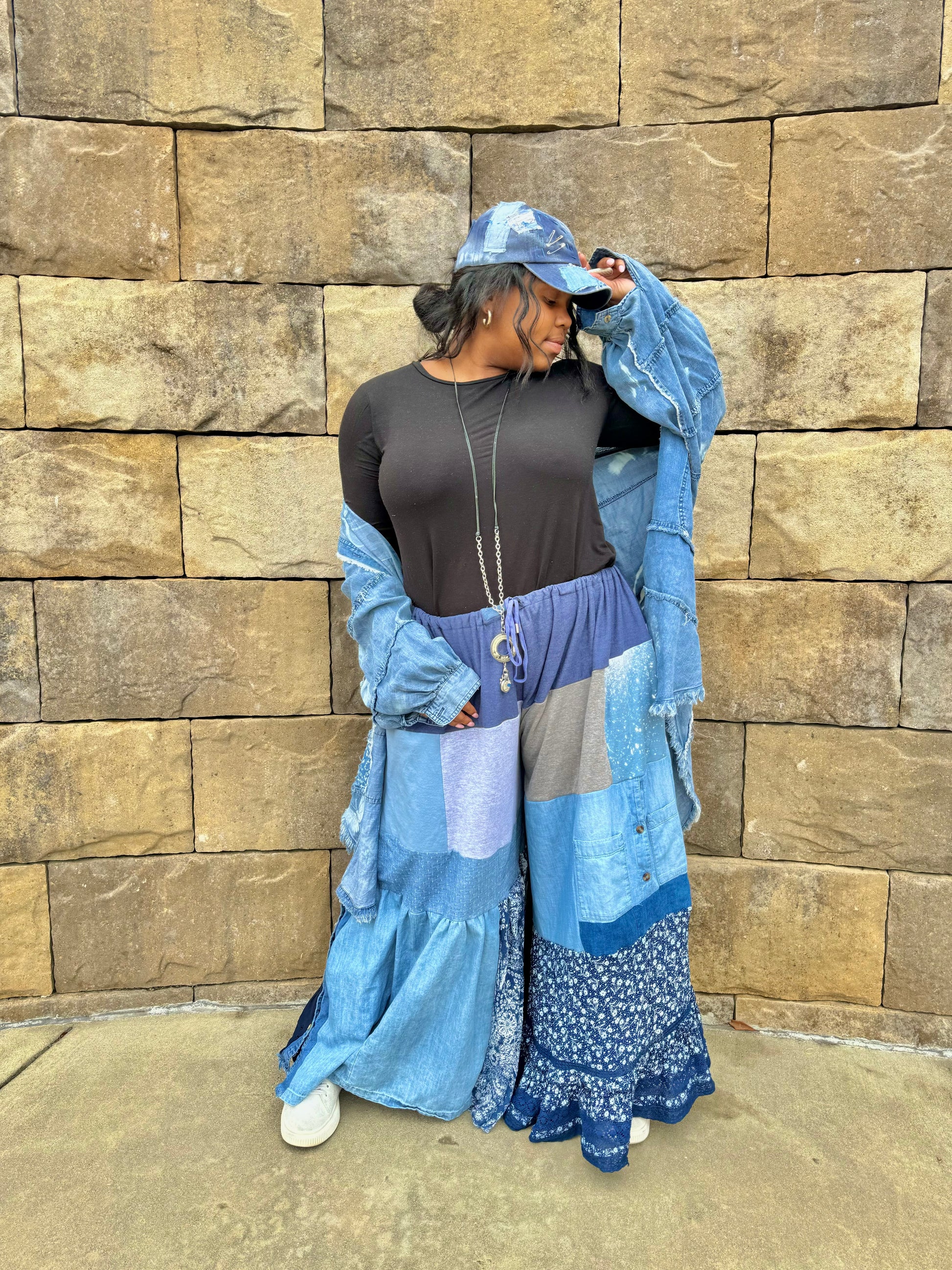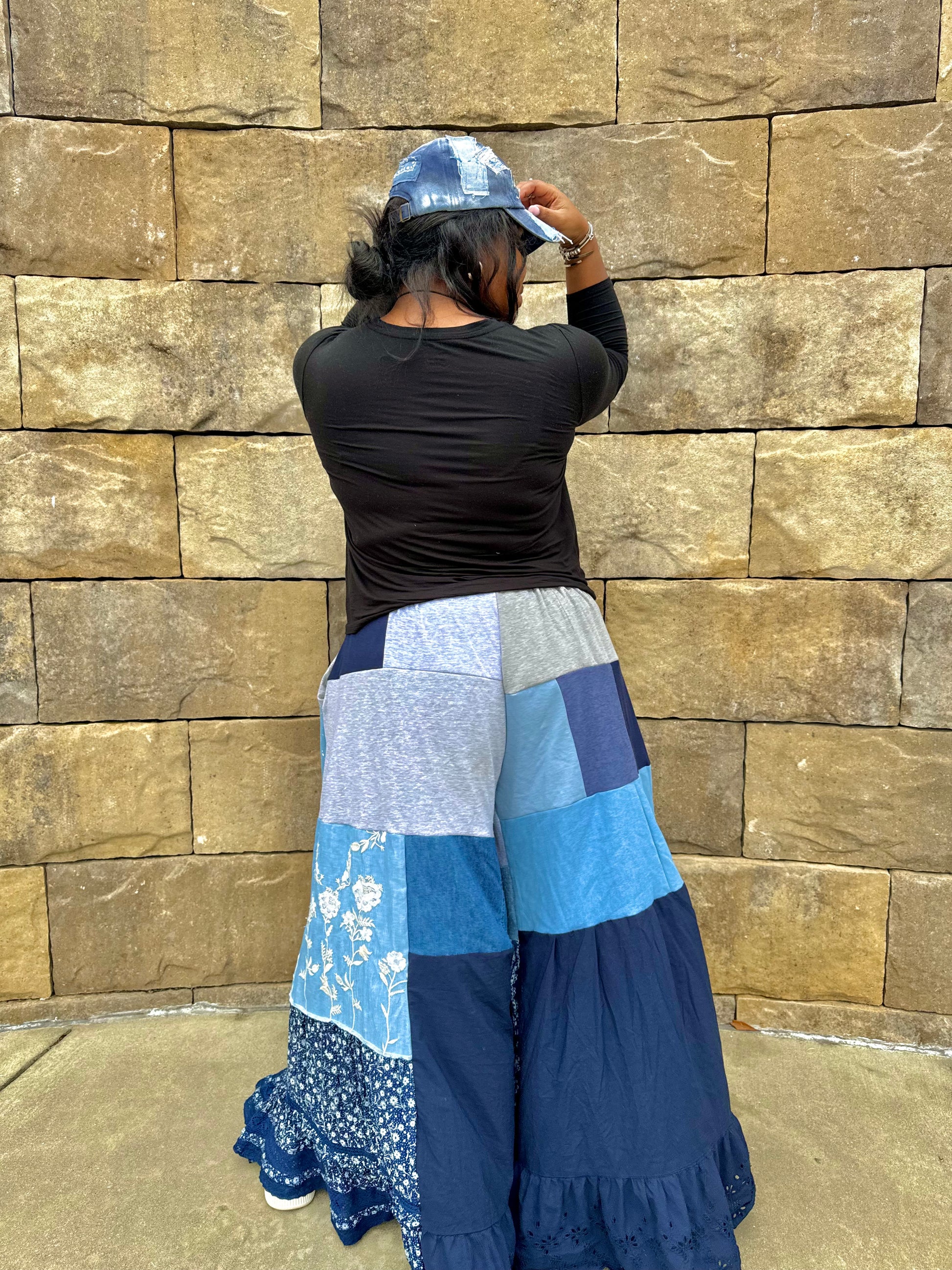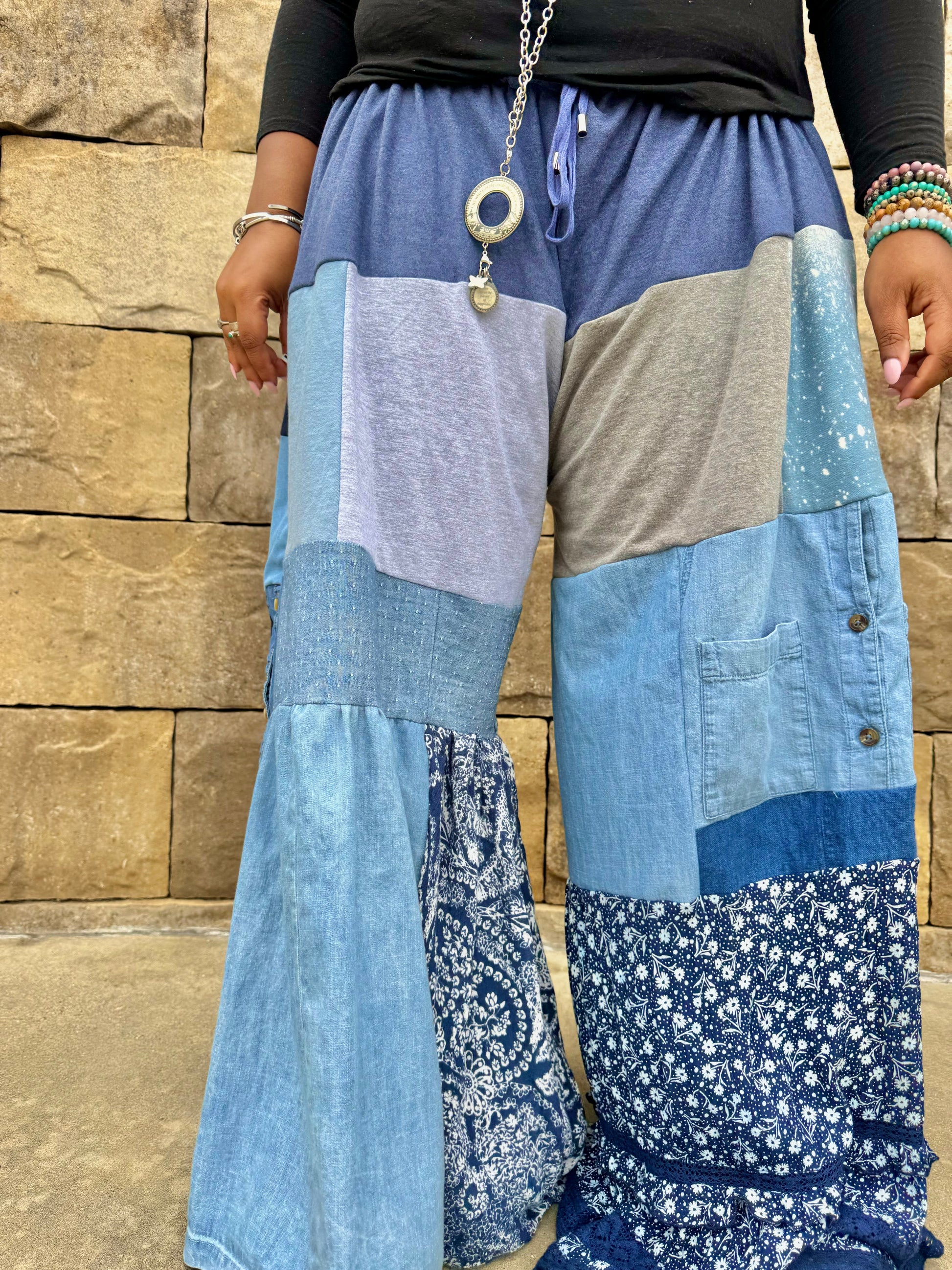 - All fabrics are hand arranged and cut into pieces to make beautiful pant legs.