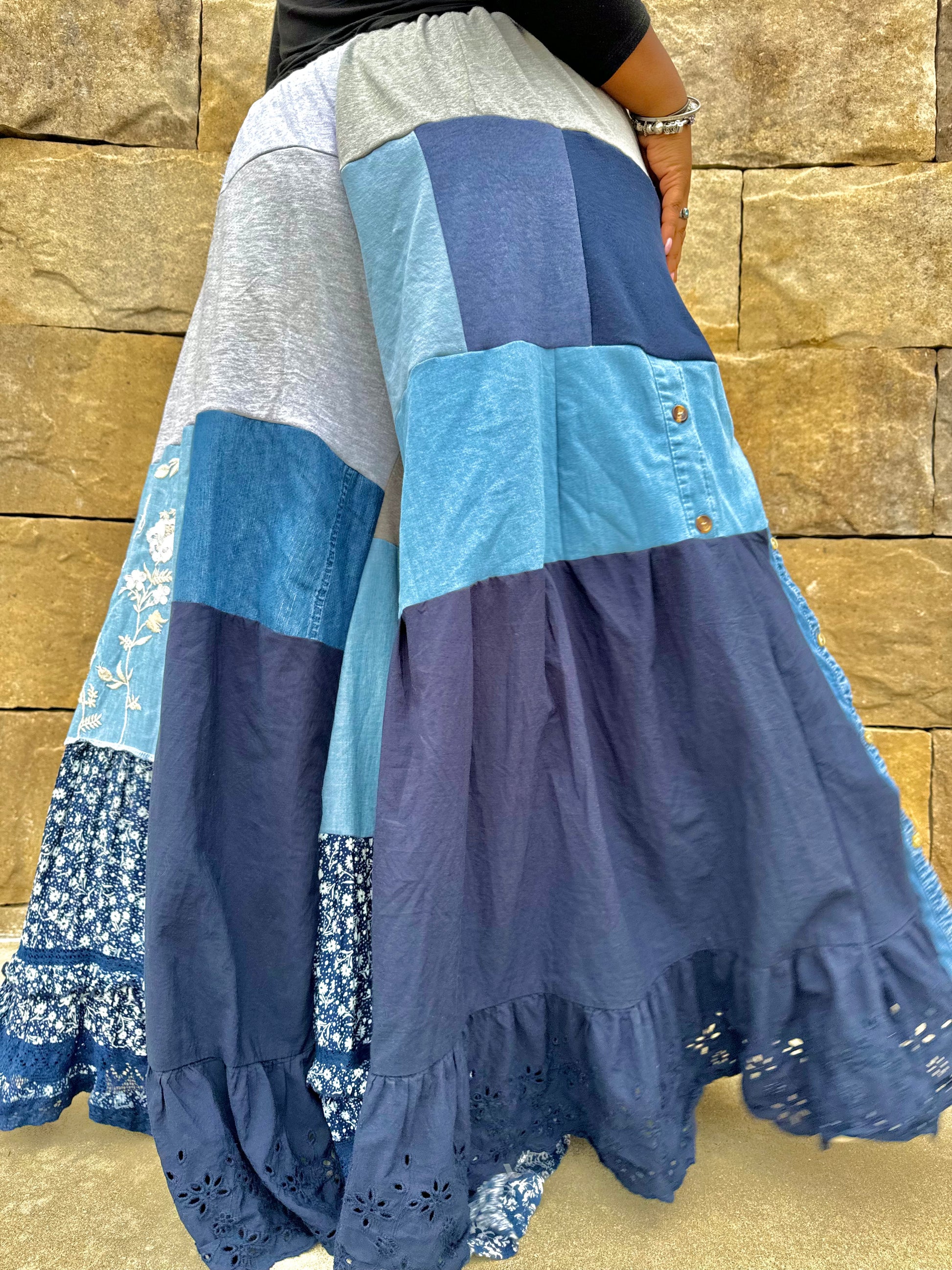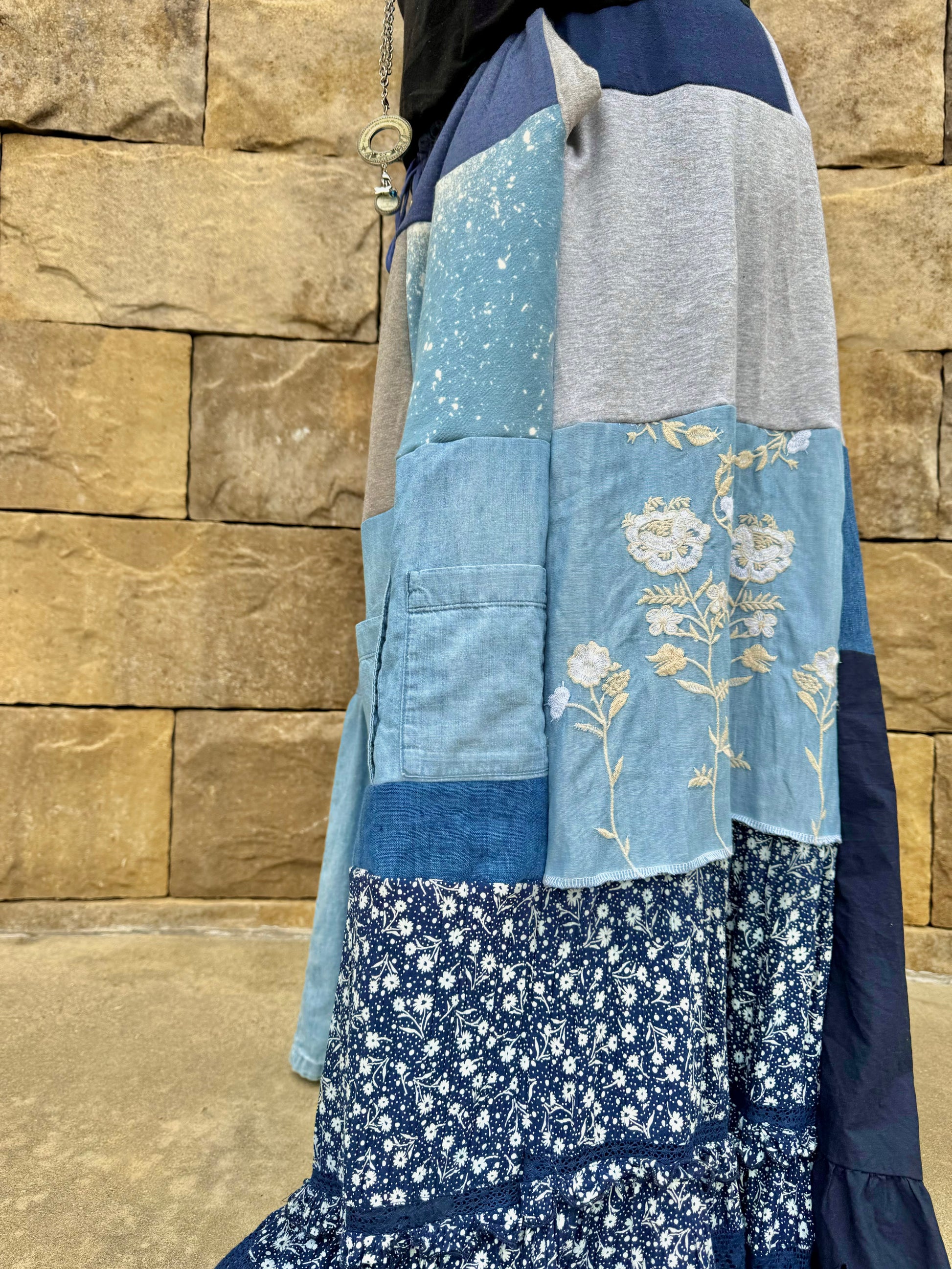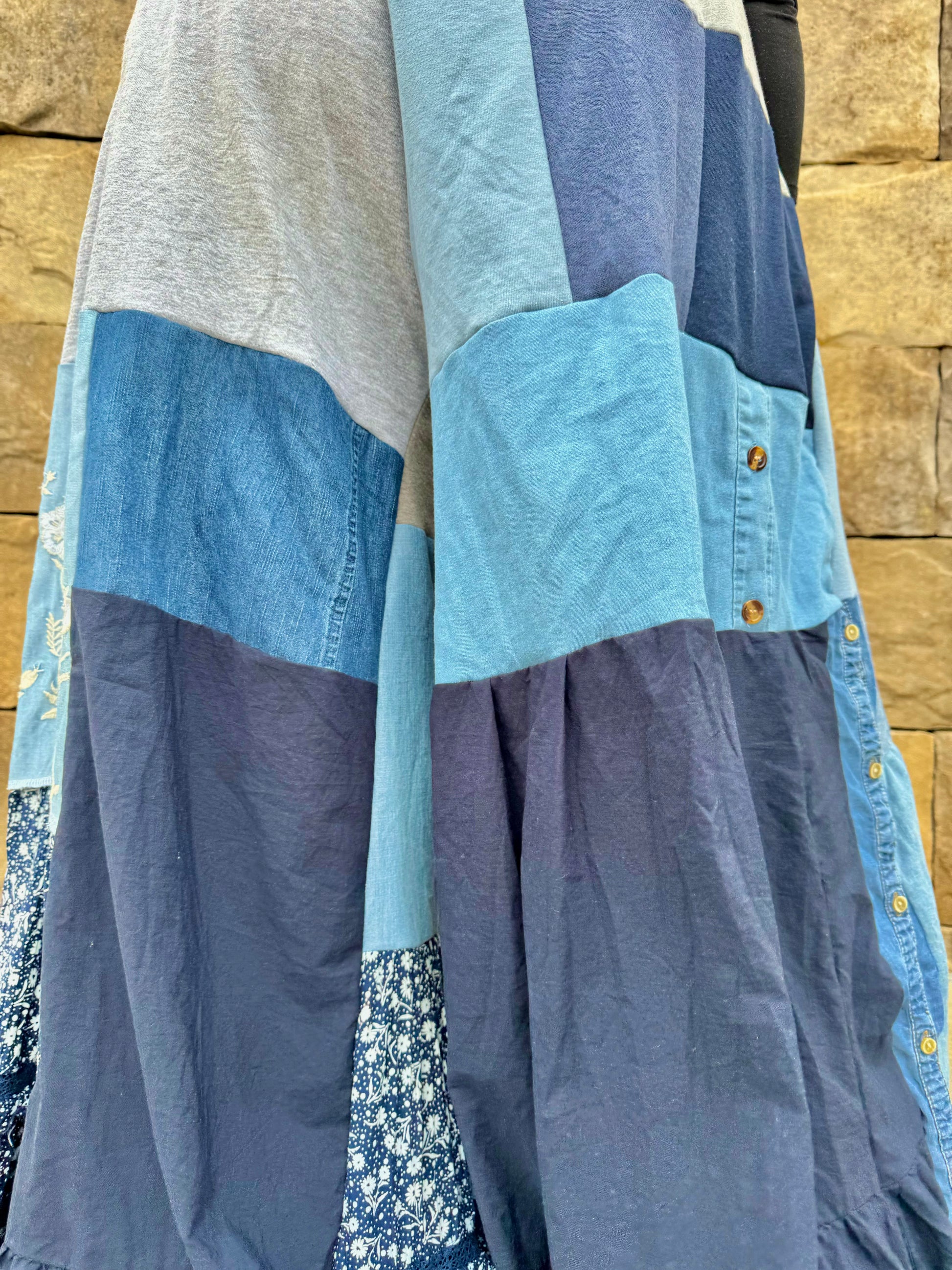 - Double lined tshirt fabric and a mix of fabrics from dresses and skirts.