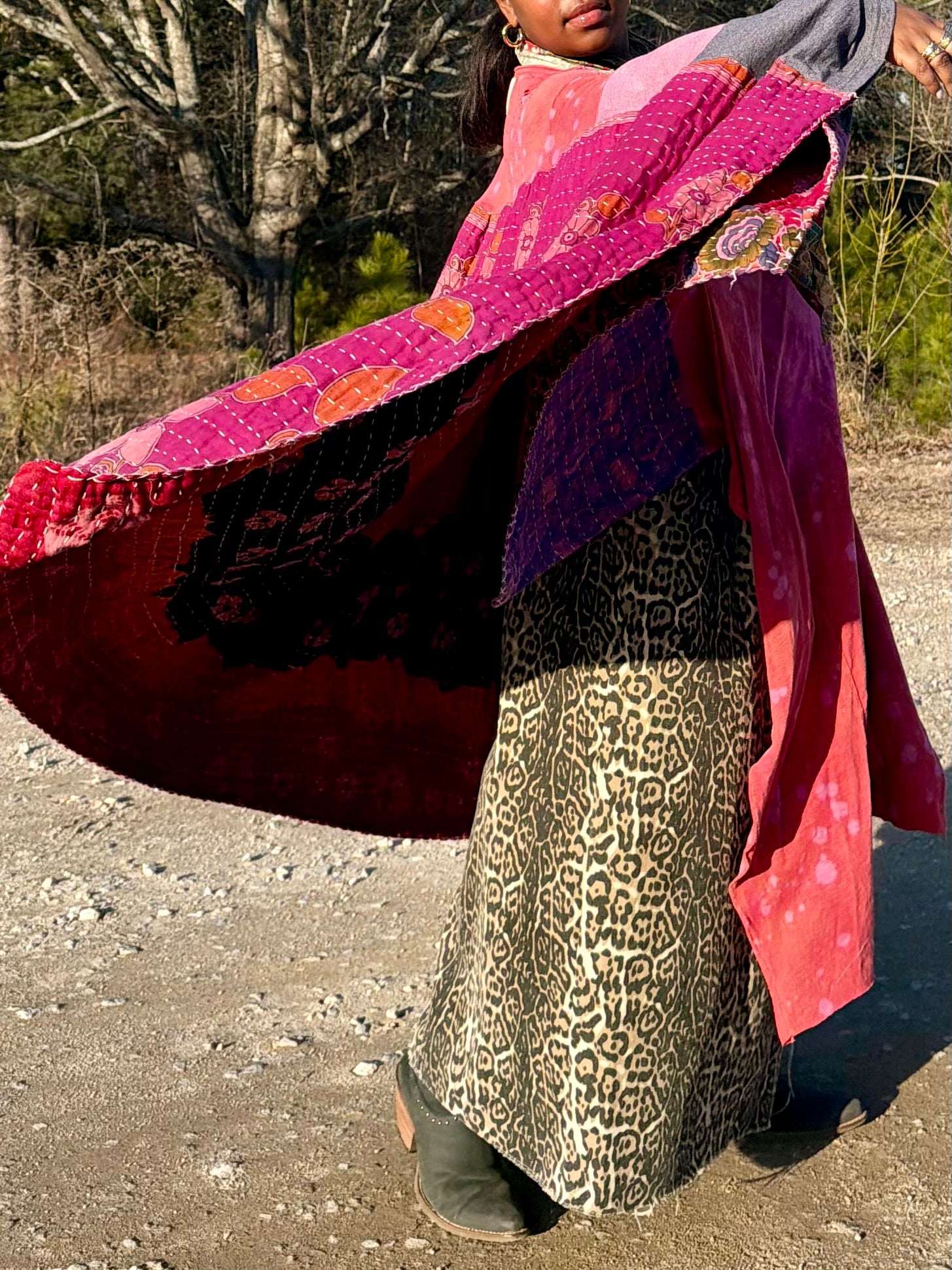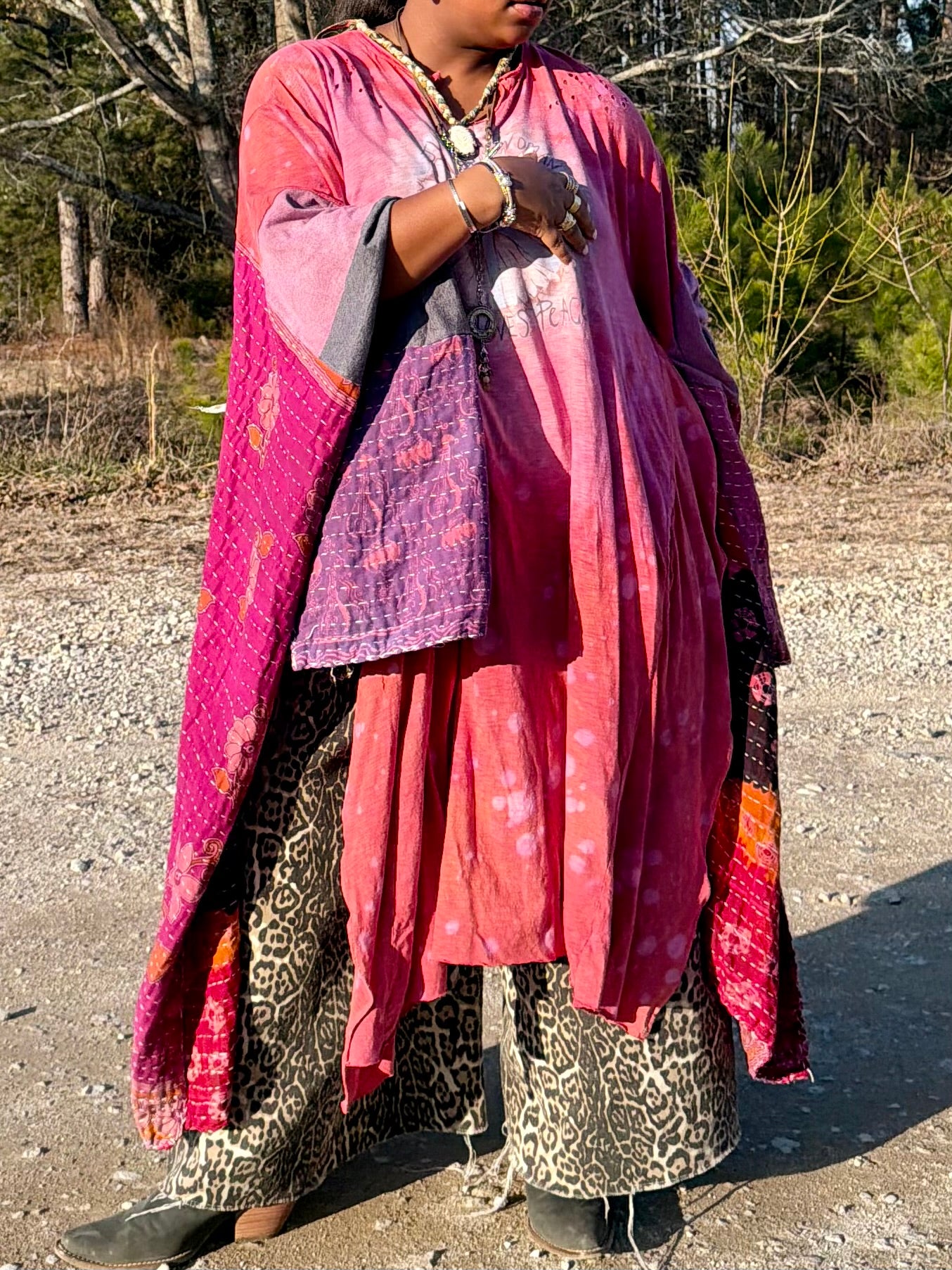 - All fabrics are hand arranged and cut into pieces to make a beautiful dress.