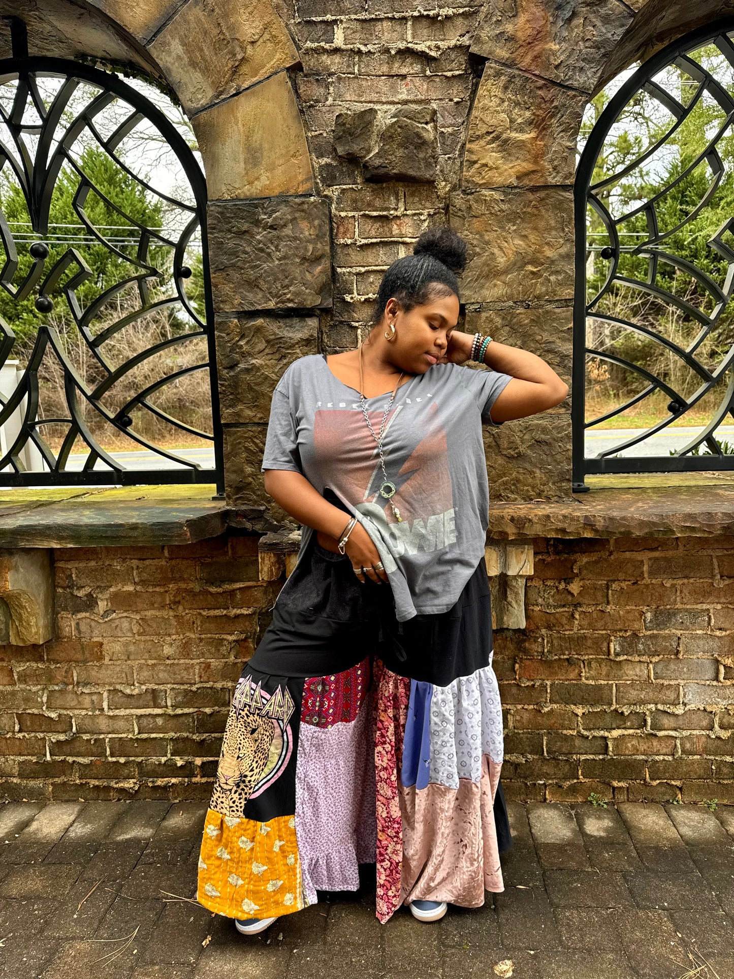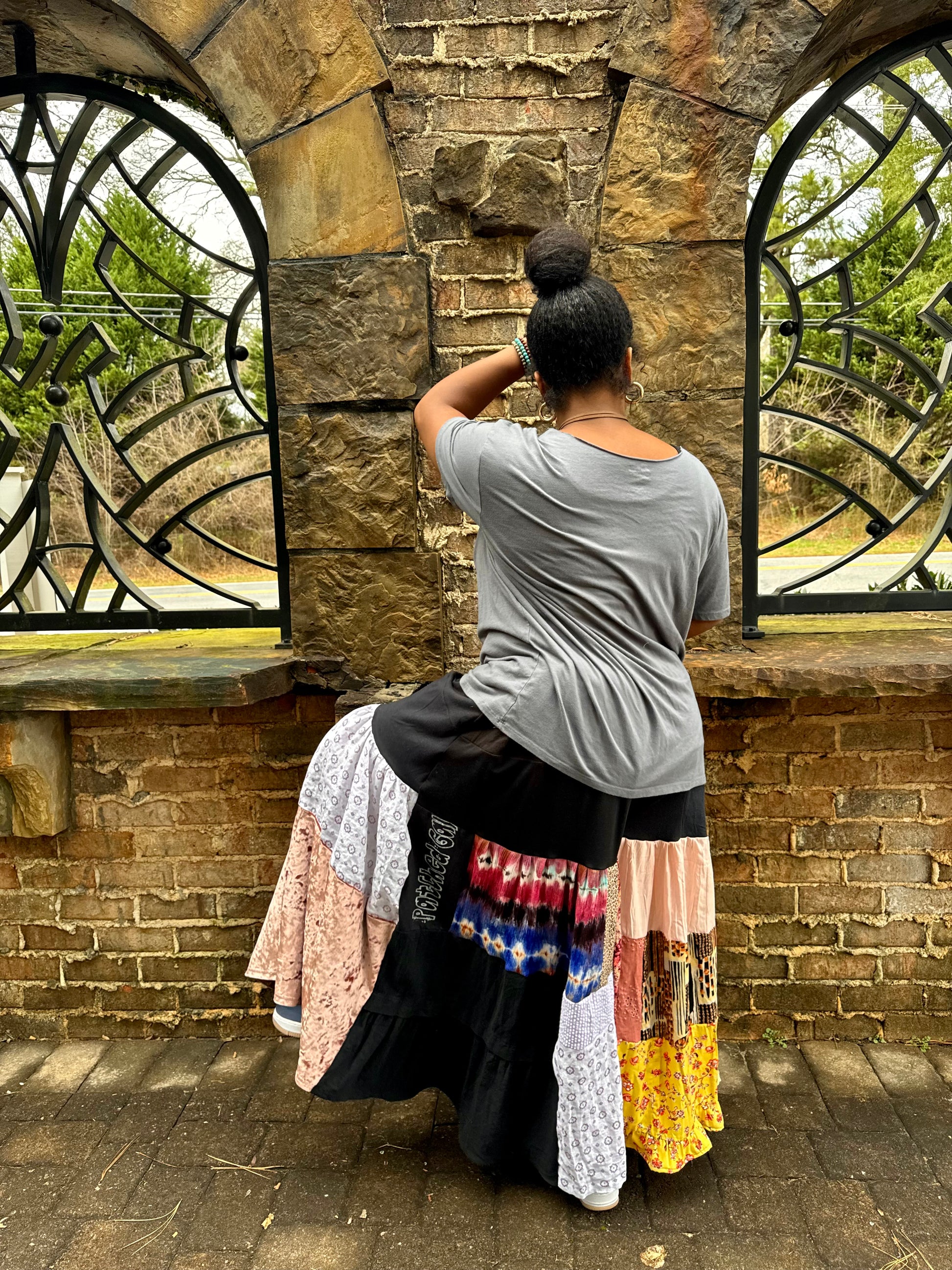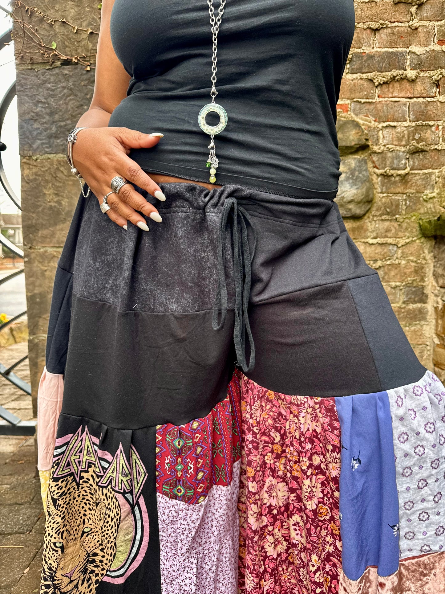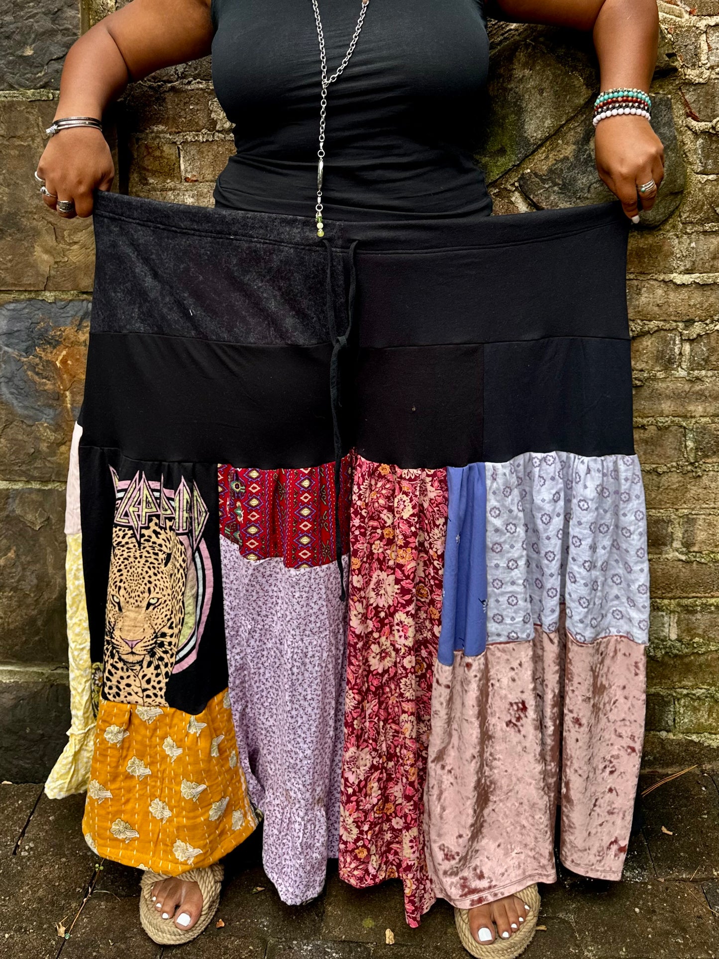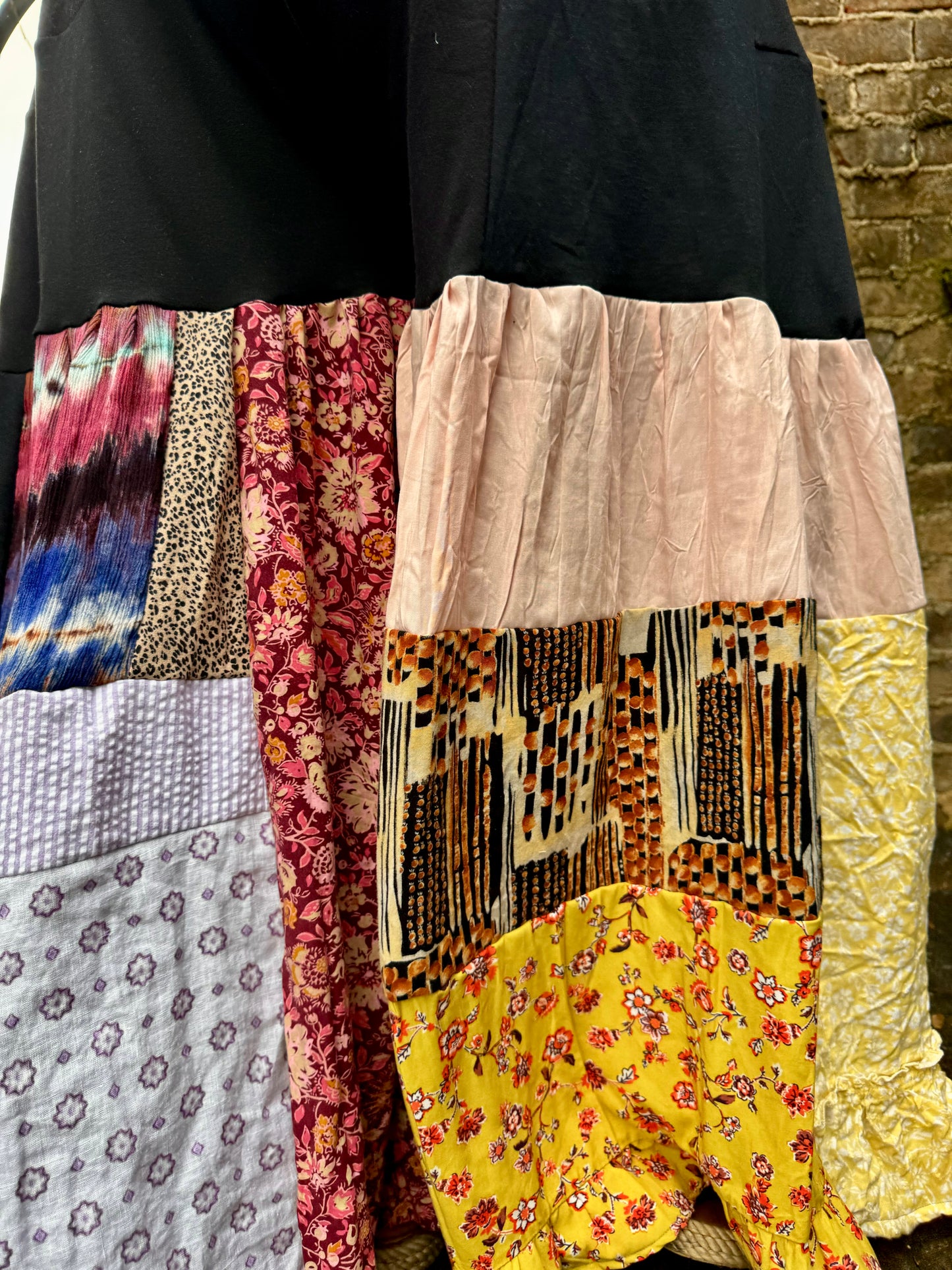 - Double lined tshirt fabric and a mix of fabrics from dresses and skirts.
