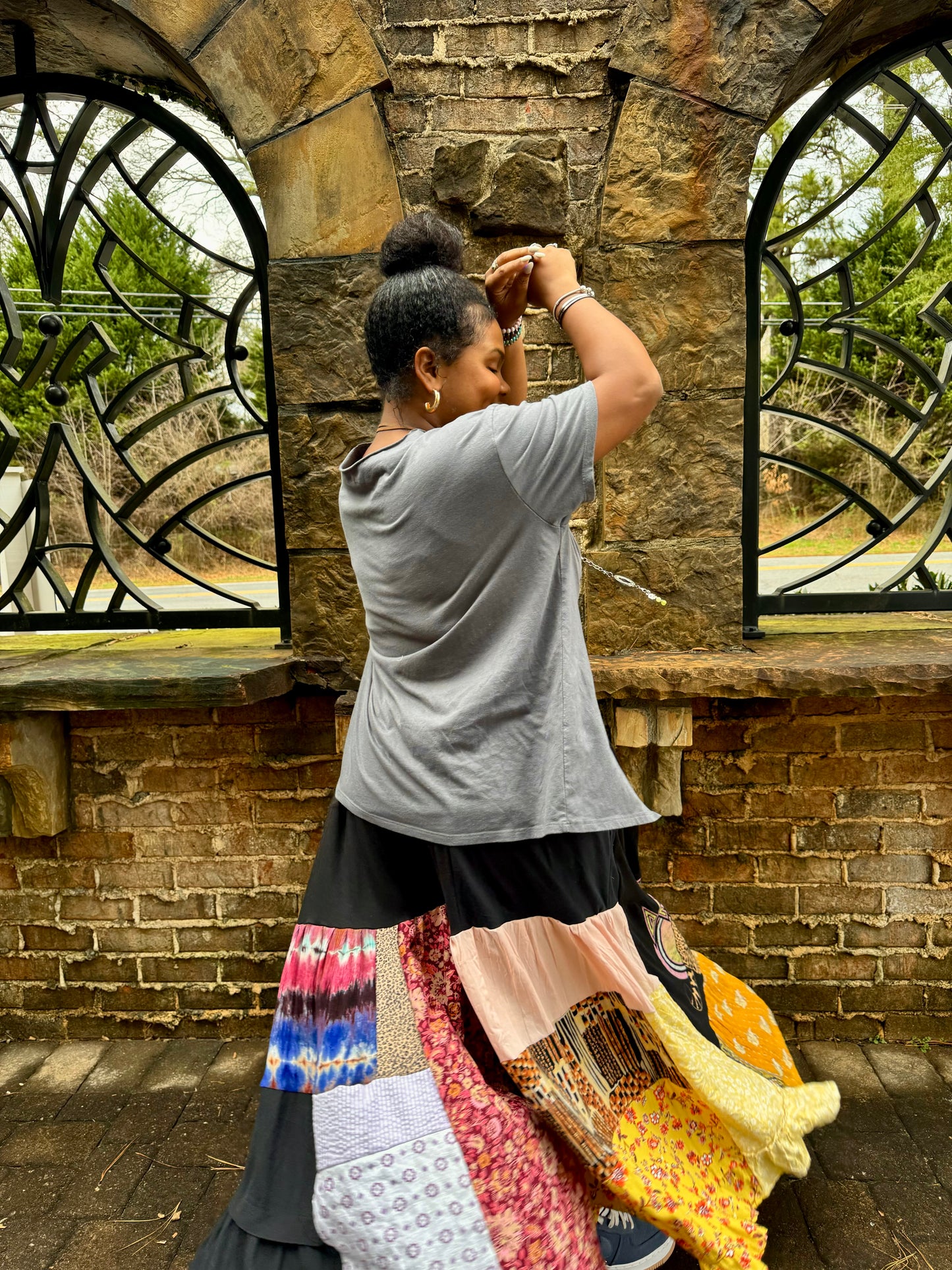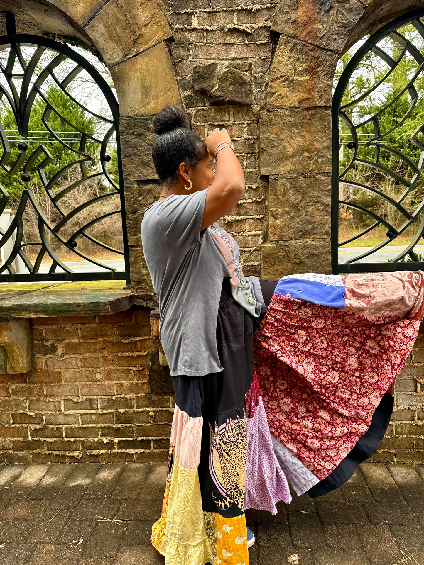- All fabrics are hand arranged and cut into pieces to make beautiful pant legs.