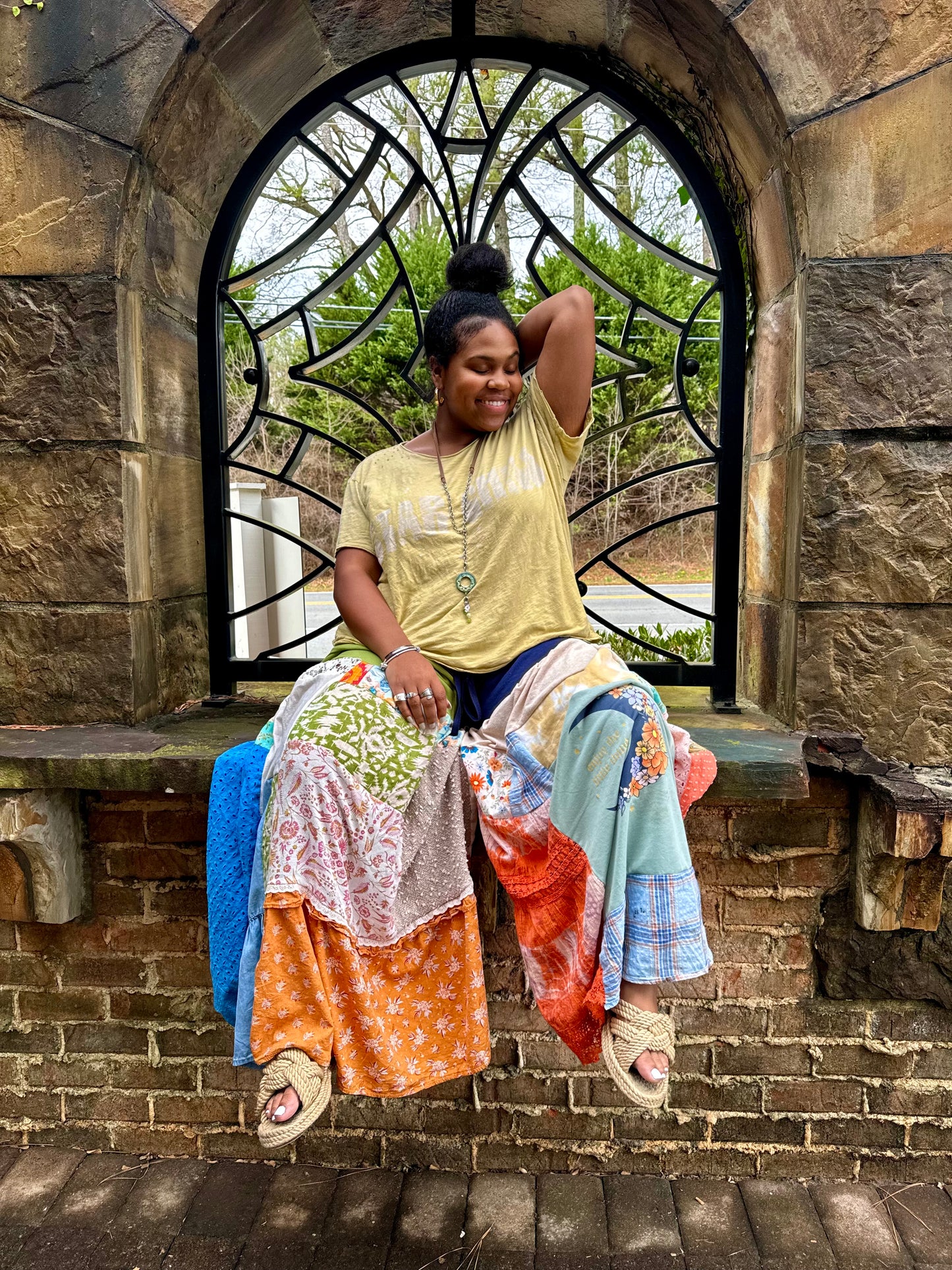 - All fabrics are hand arranged and cut into pieces to make beautiful pant legs.