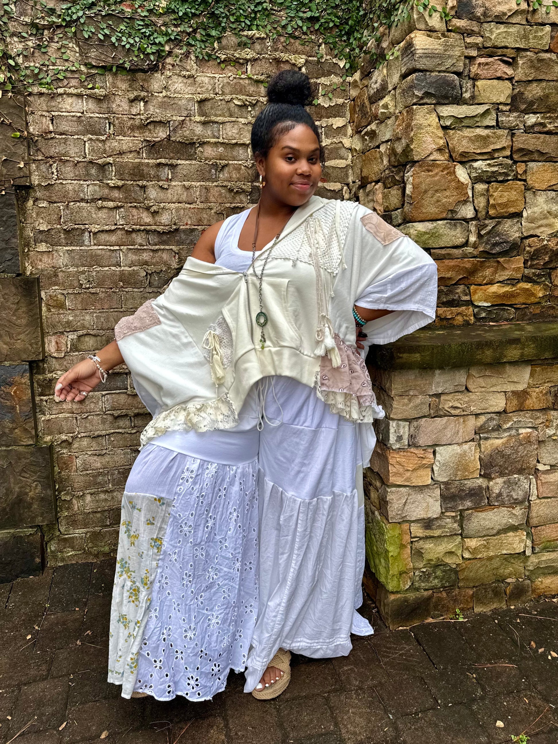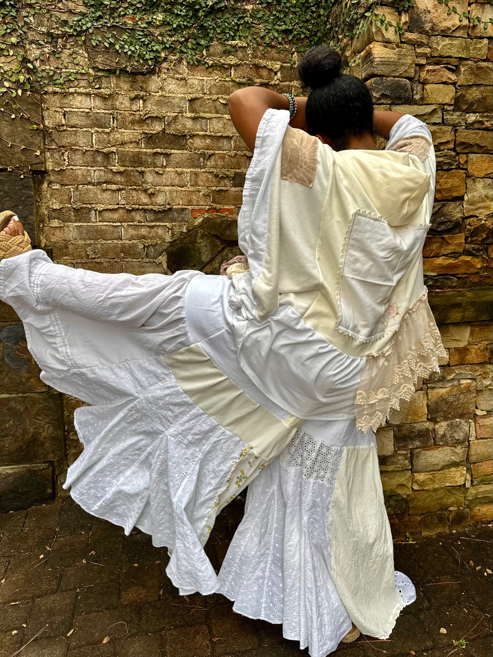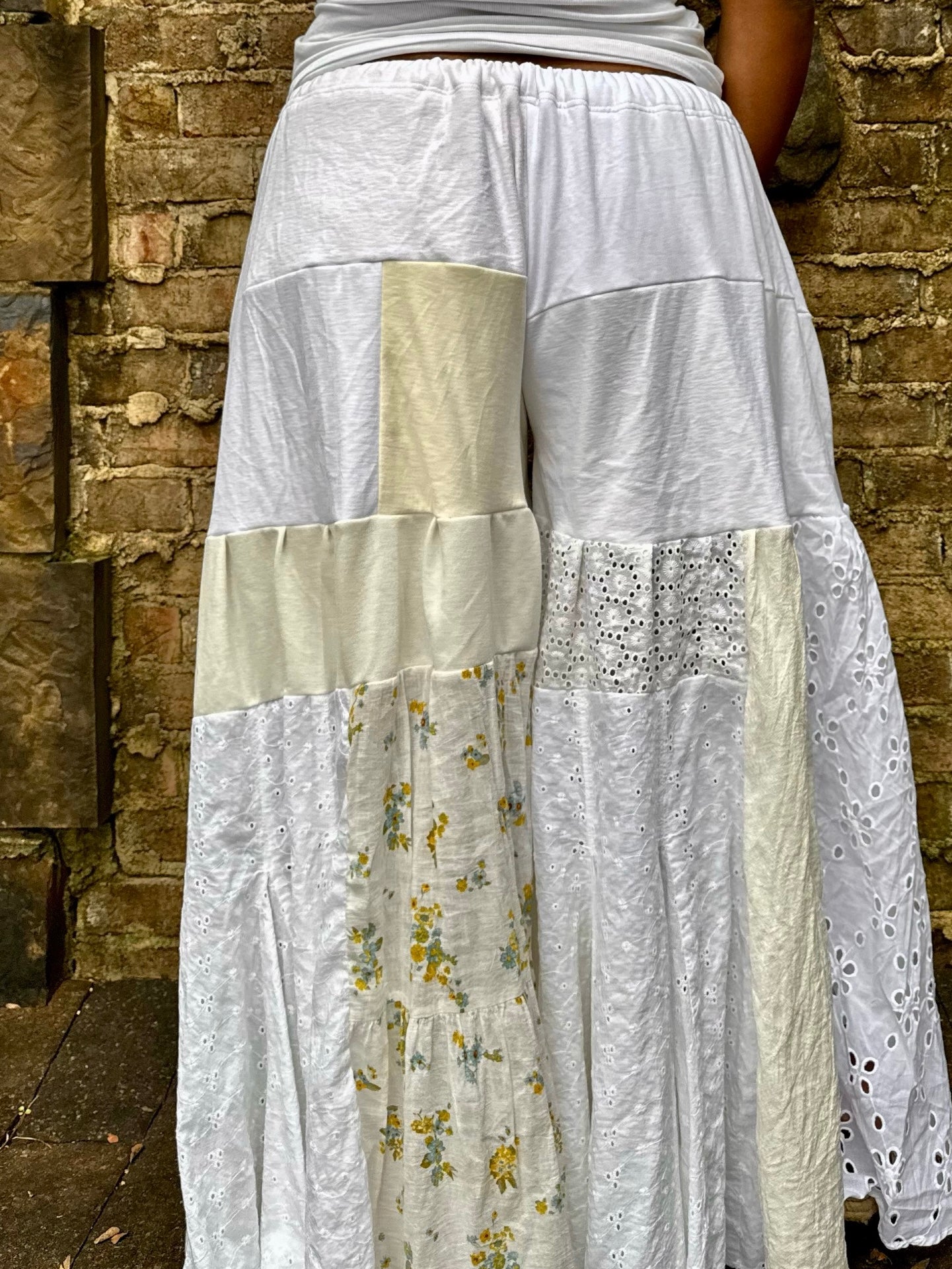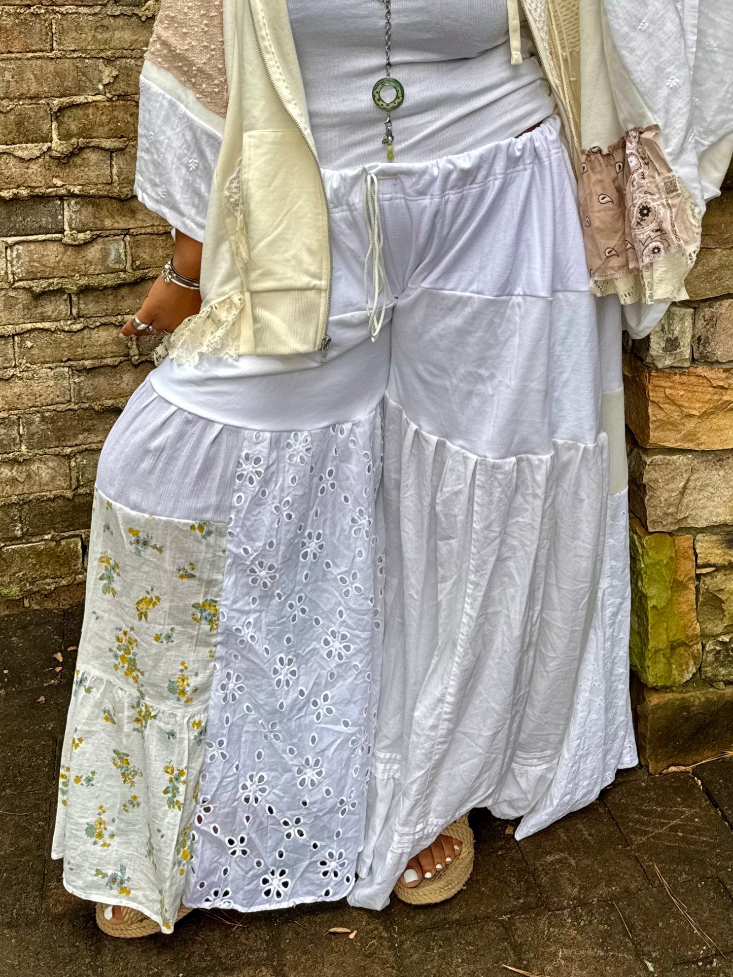 - All fabrics are hand arranged and cut into pieces to make beautiful pant legs.