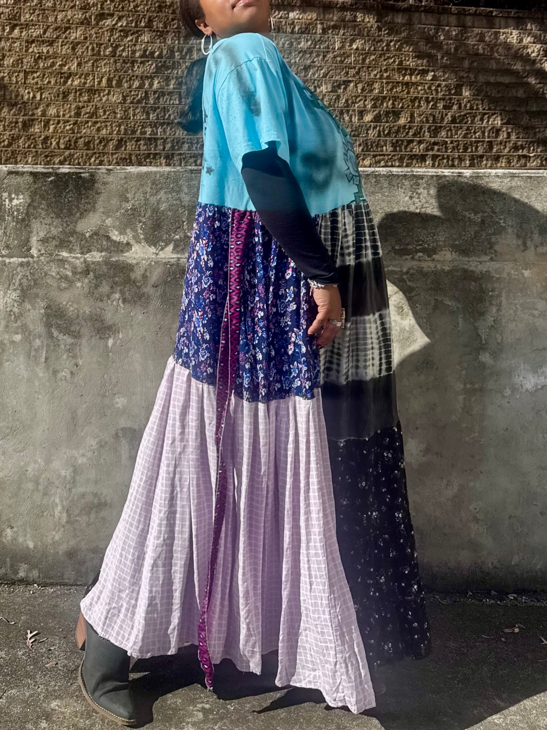 - All fabrics are hand arranged and cut into pieces to make a beautiful skirt.