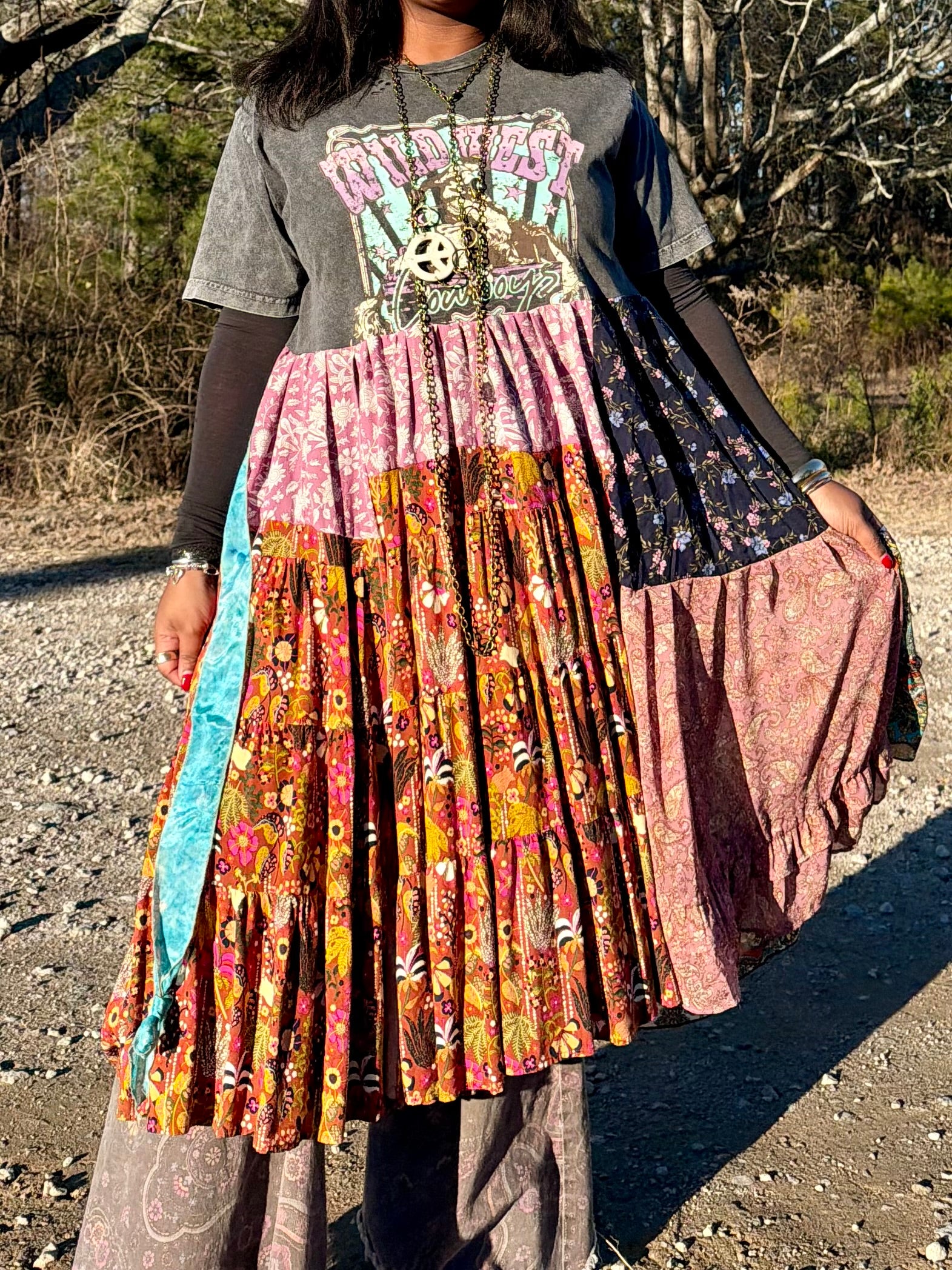 - All fabrics are hand arranged and cut into pieces to make a beautiful skirt.
