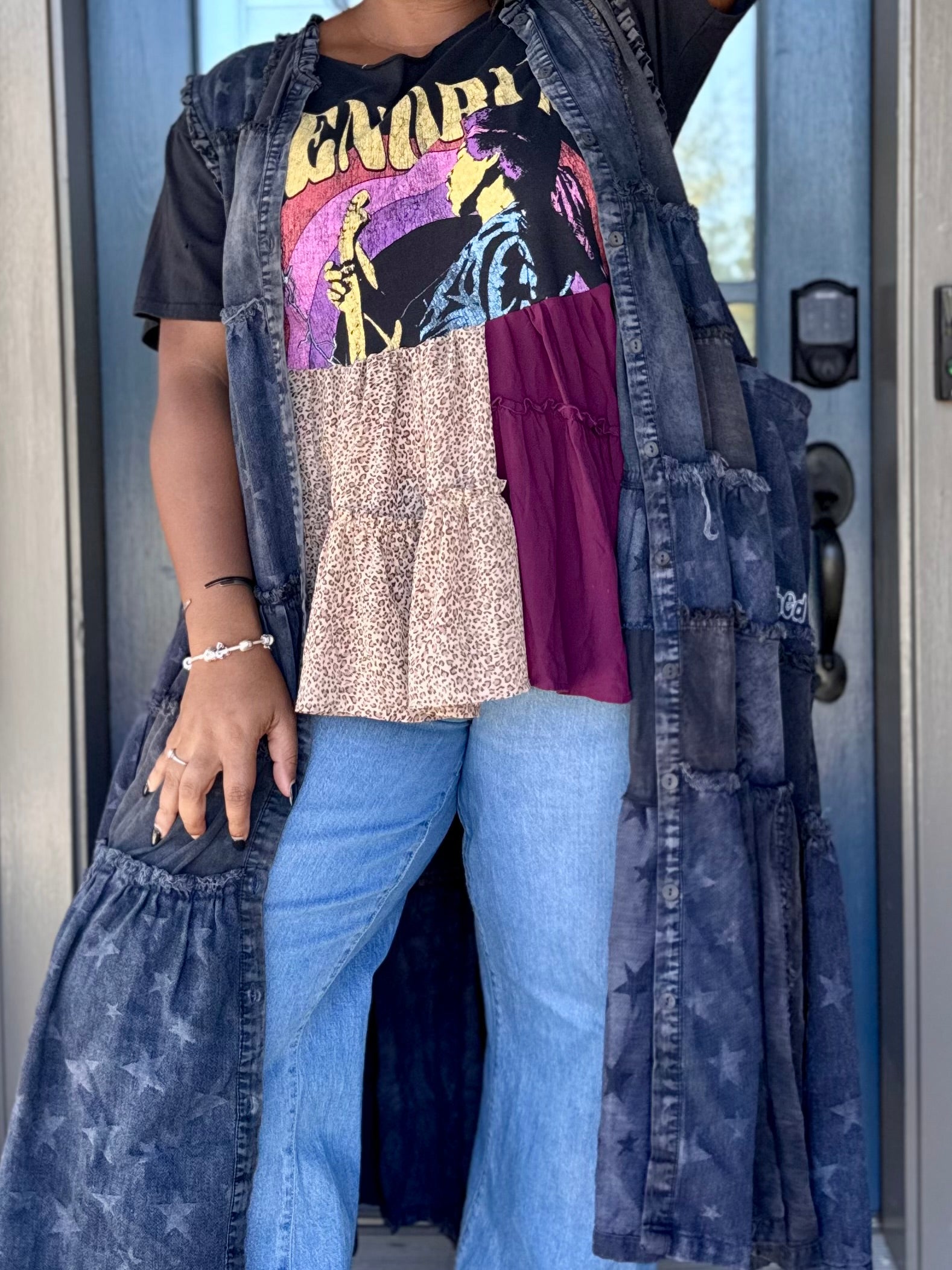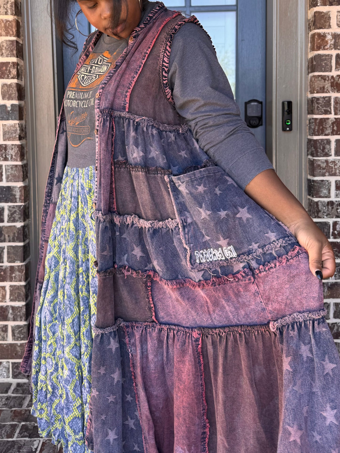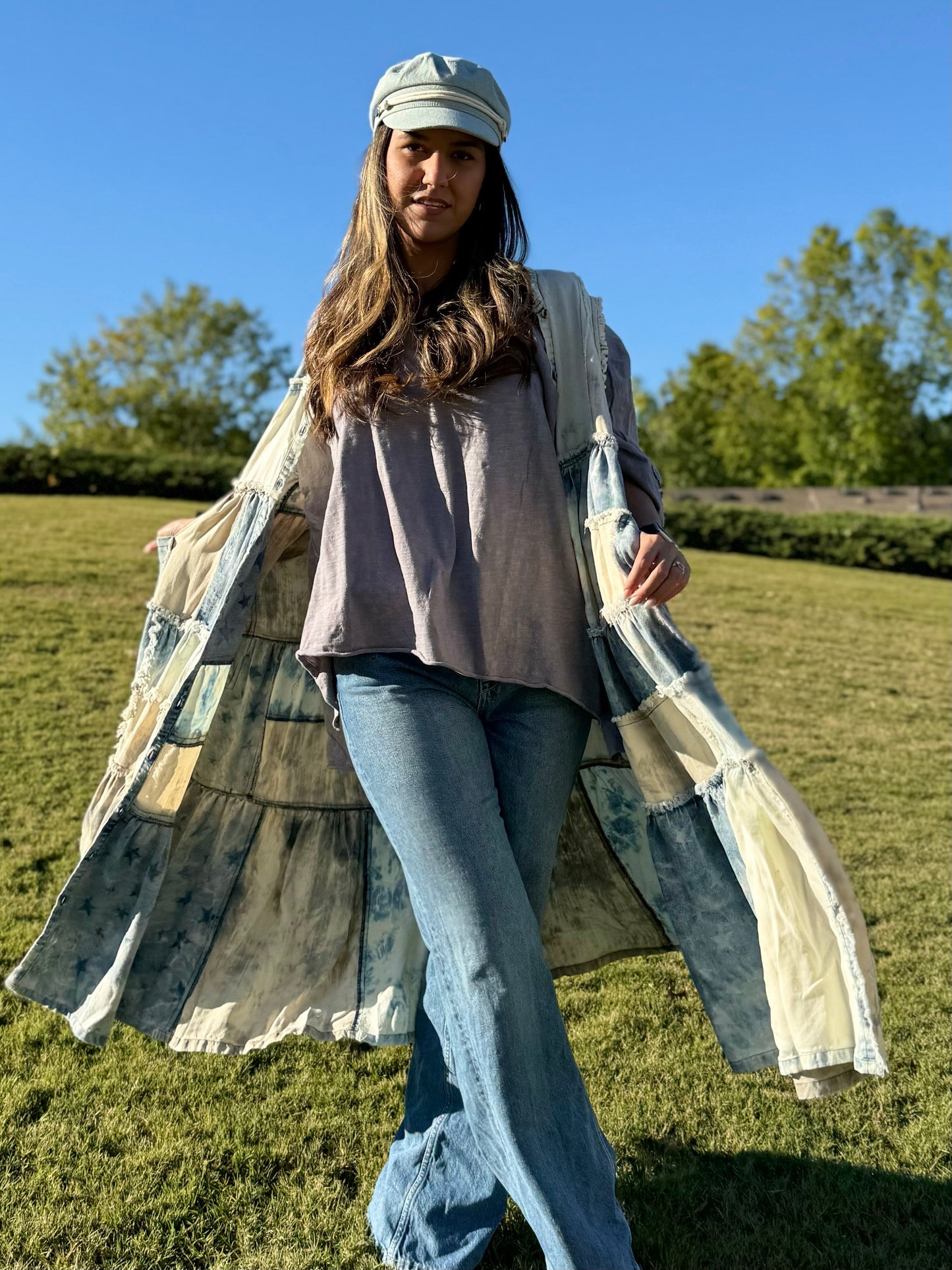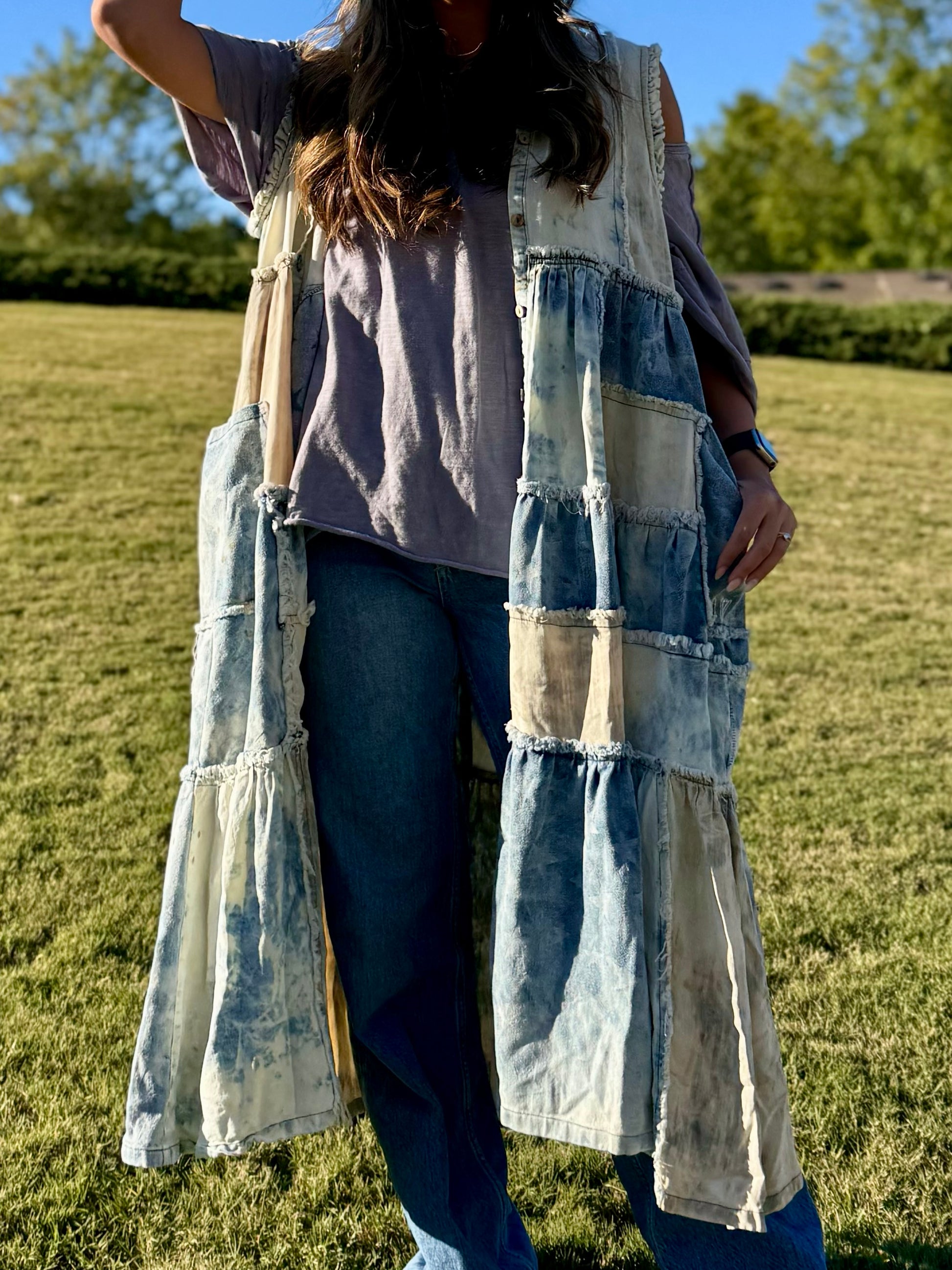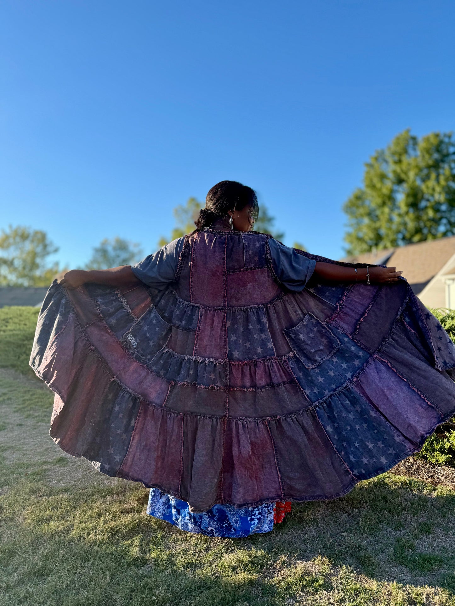 - Because this duster is upcycled, each is one of a kind and will vary in color.