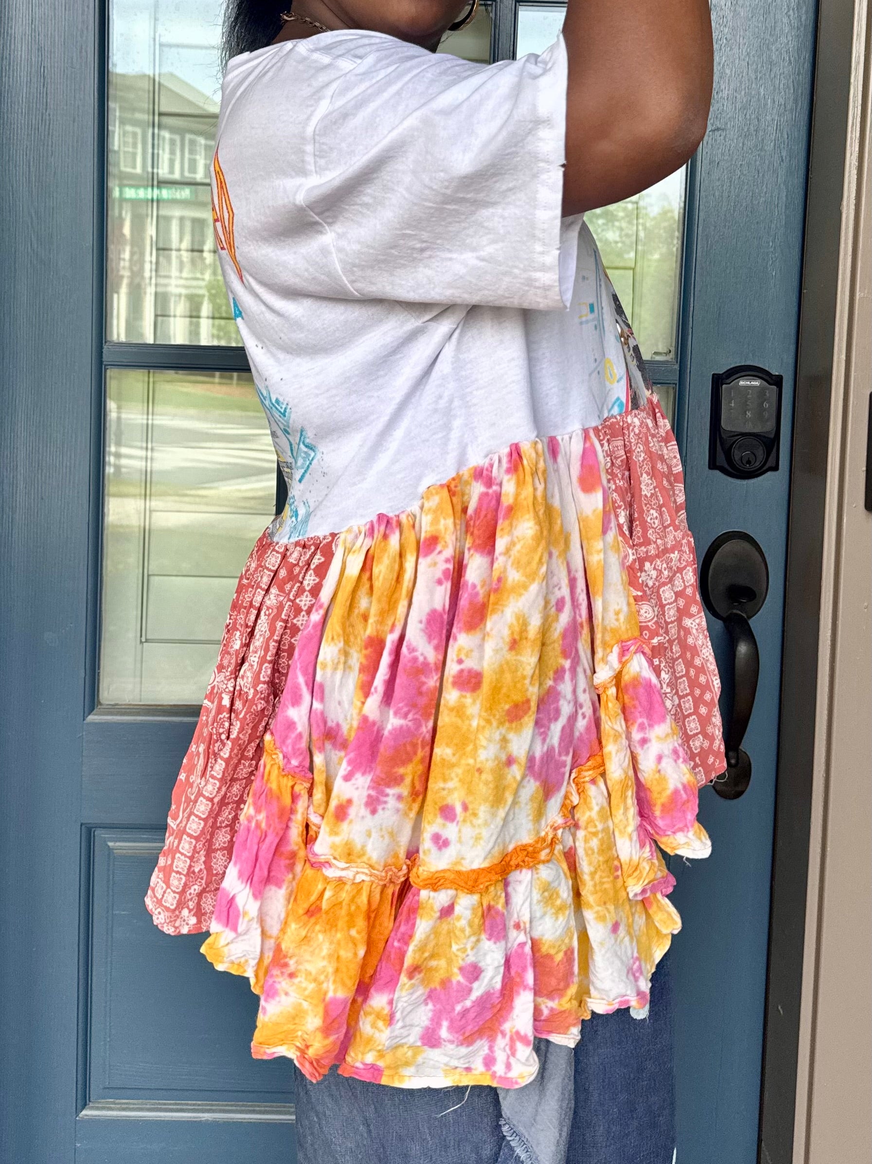 - All fabrics are hand arranged and cut into pieces to make a beautiful skirt.