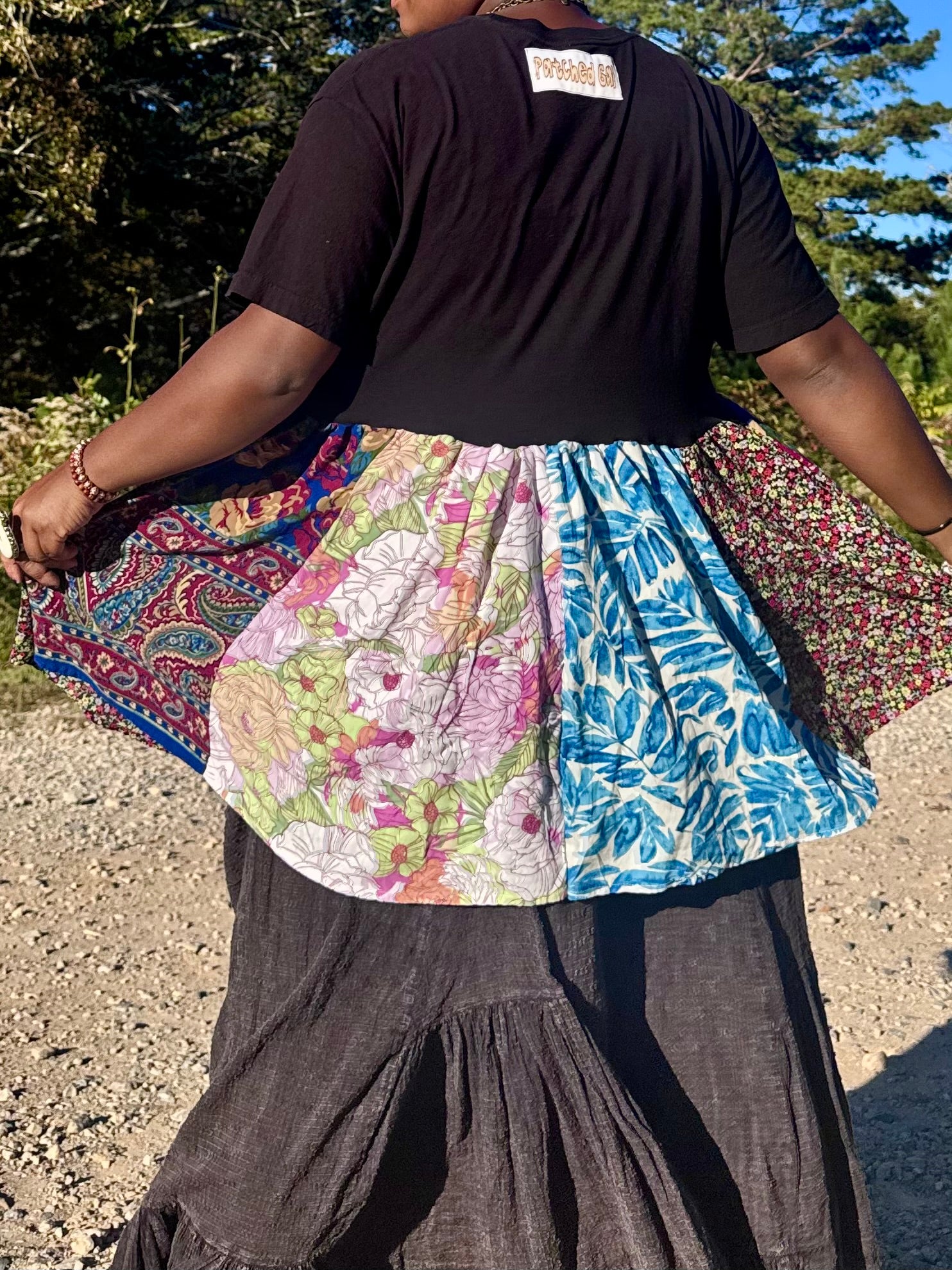 - All fabrics are hand arranged and cut into pieces to make a beautiful skirt.