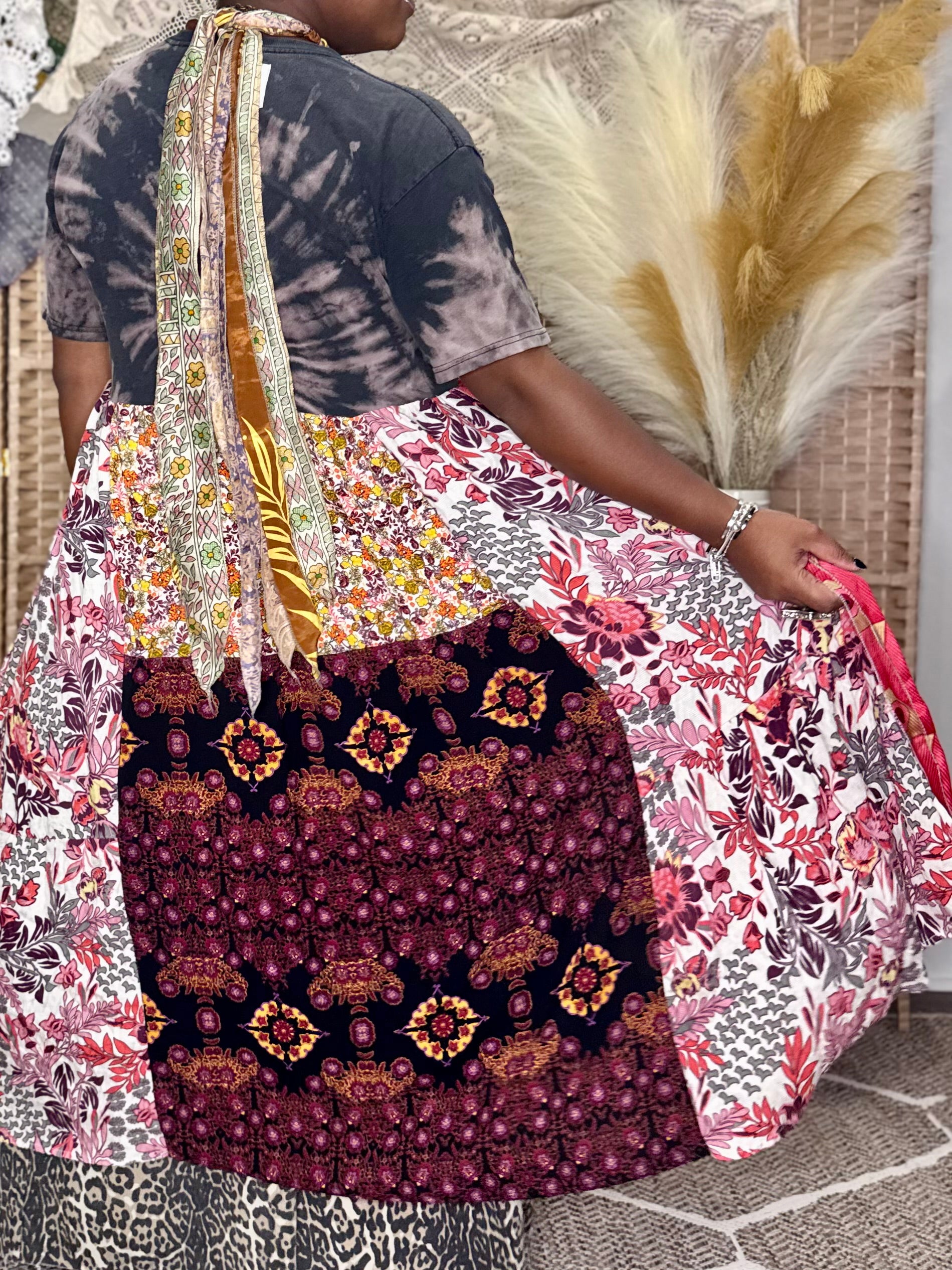 - All fabrics are hand arranged and cut into pieces to make a beautiful skirt.