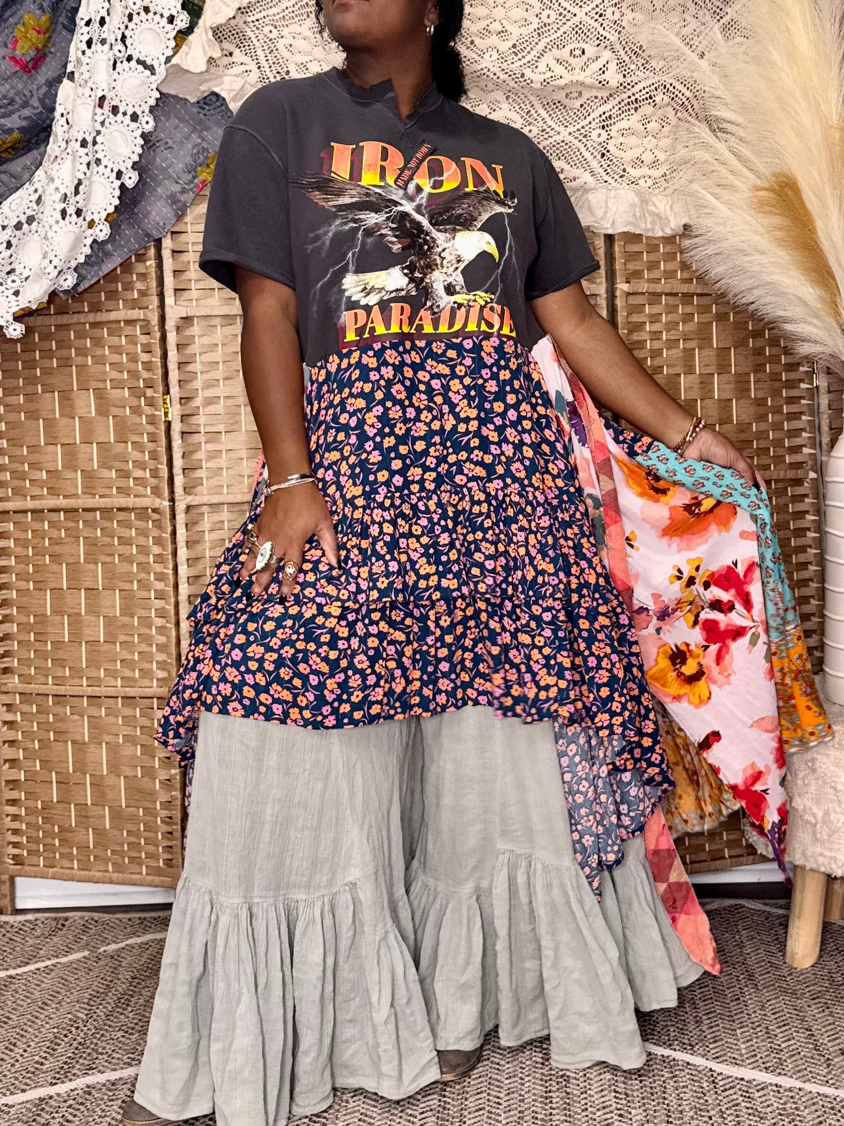 - All fabrics are hand arranged and cut into pieces to make a beautiful skirt.