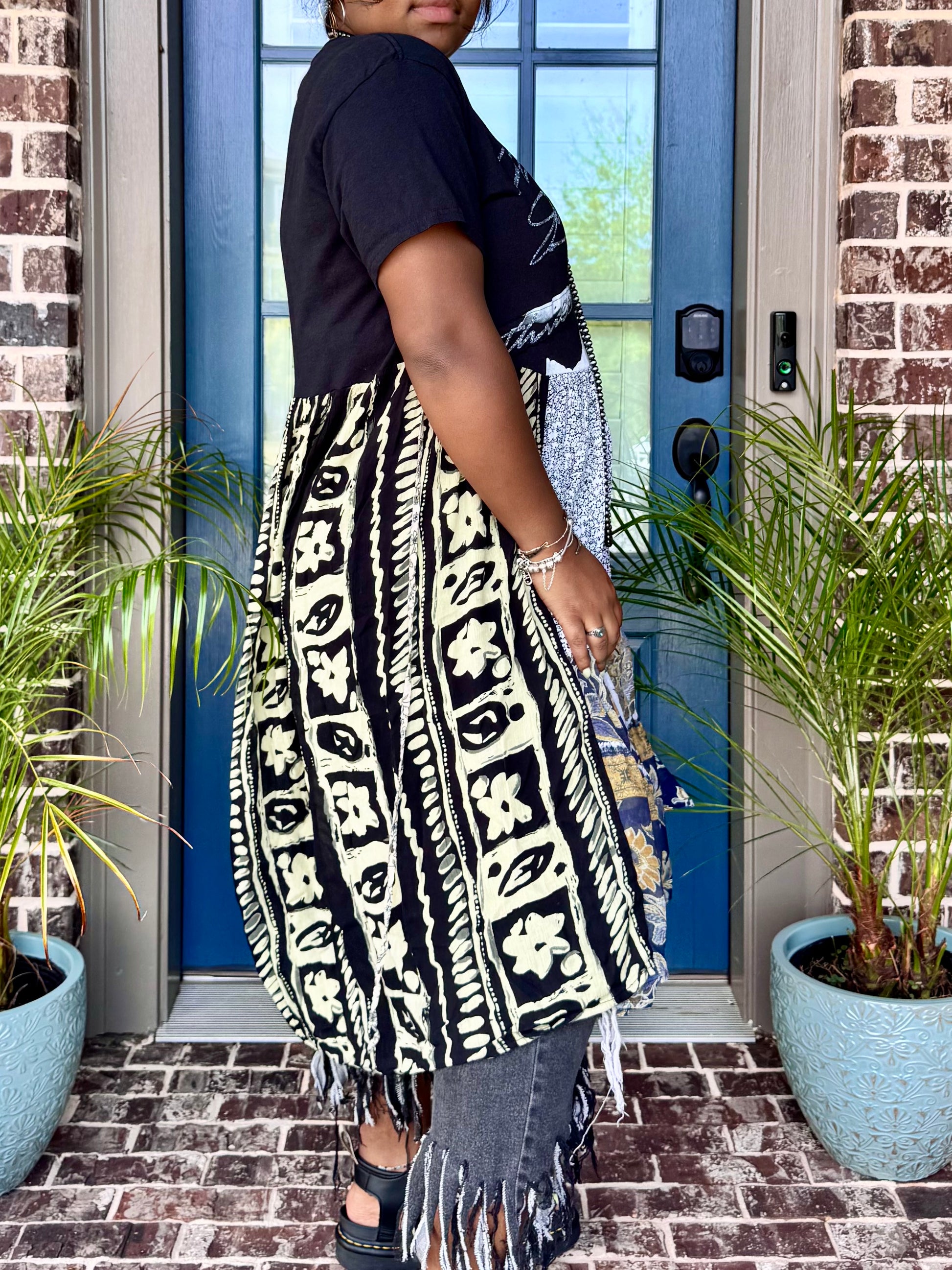 - All fabrics are hand arranged and cut into pieces to make a beautiful skirt.