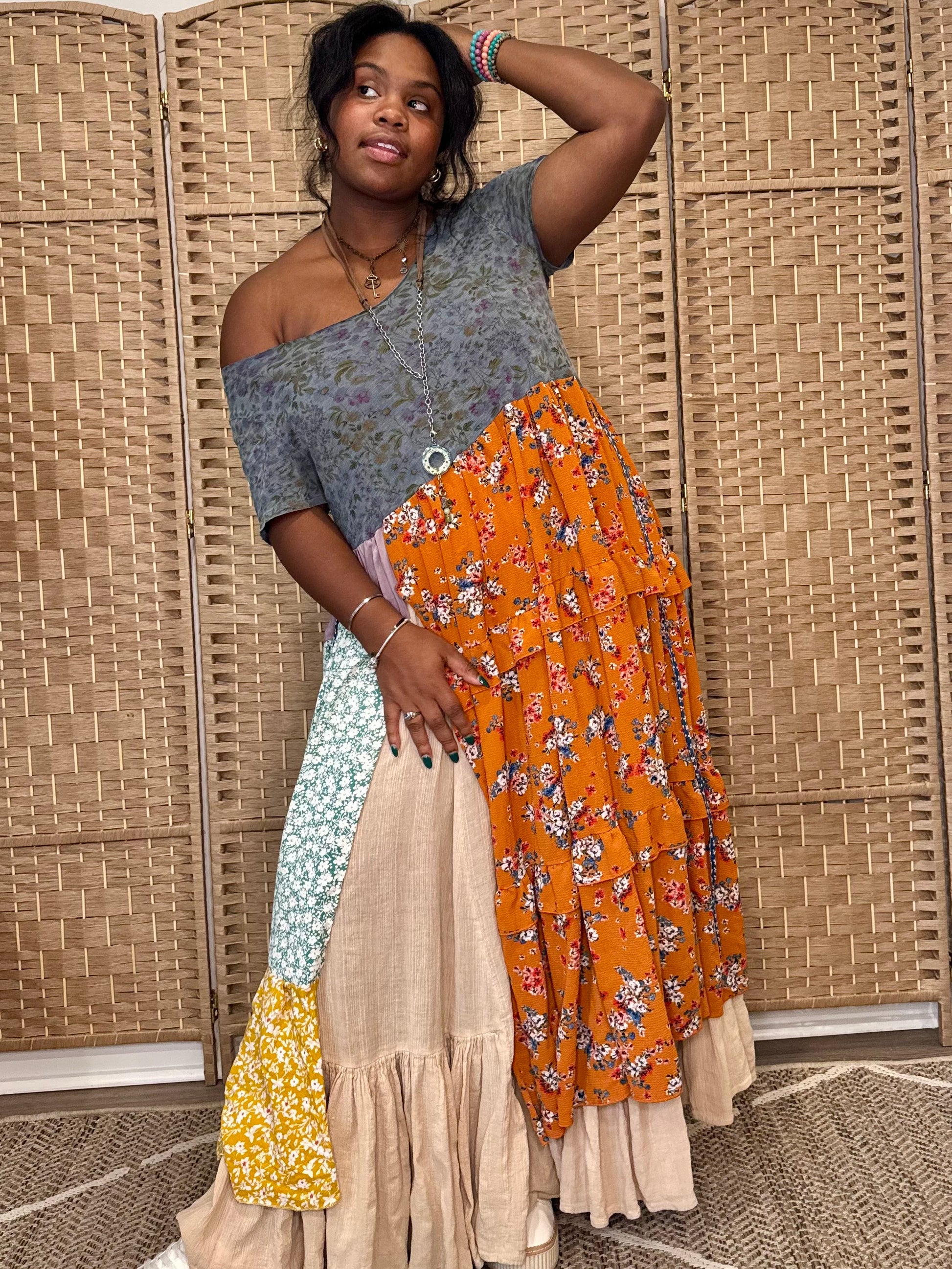 - All fabrics are hand arranged and cut into pieces to make a beautiful skirt.