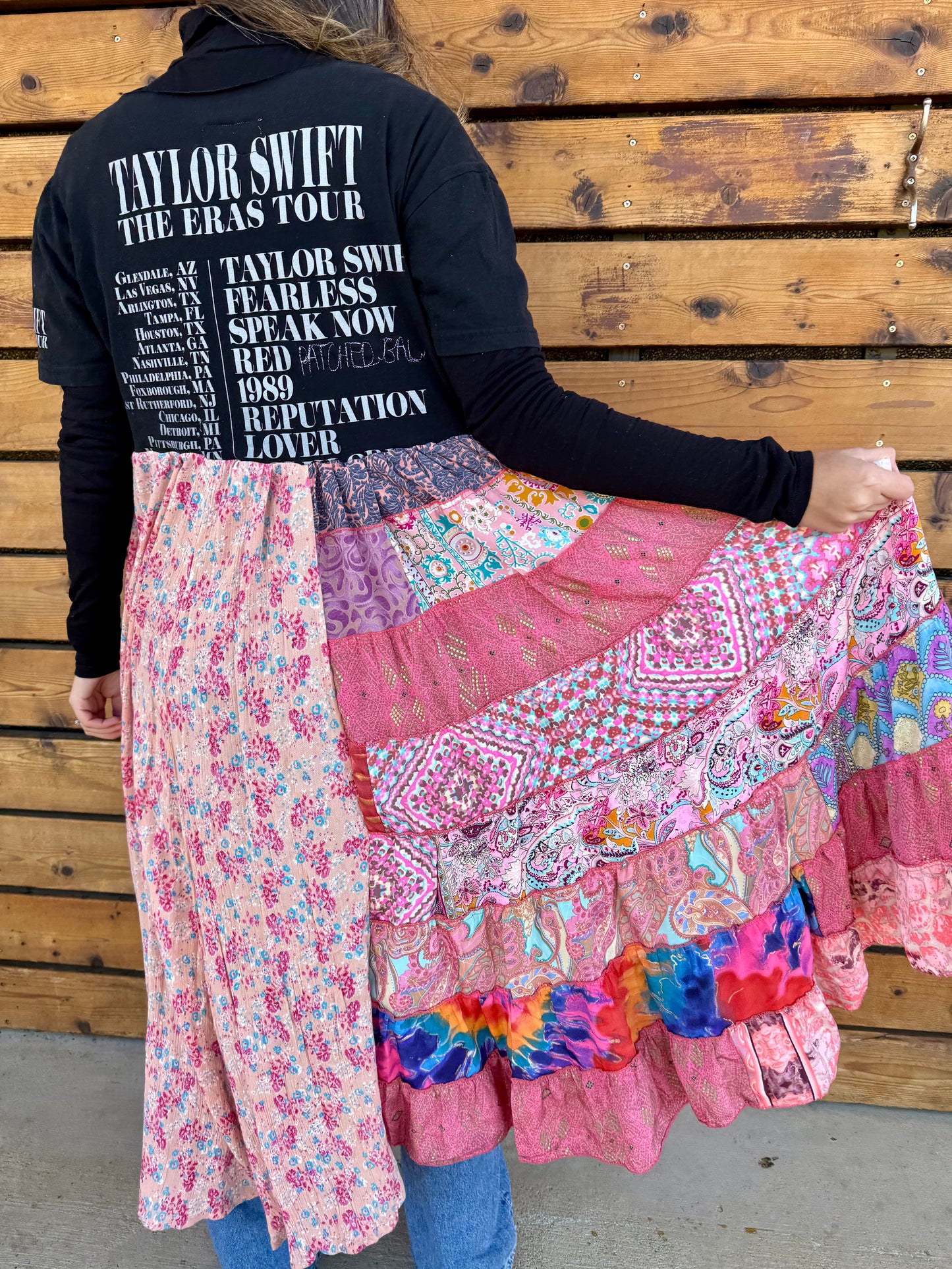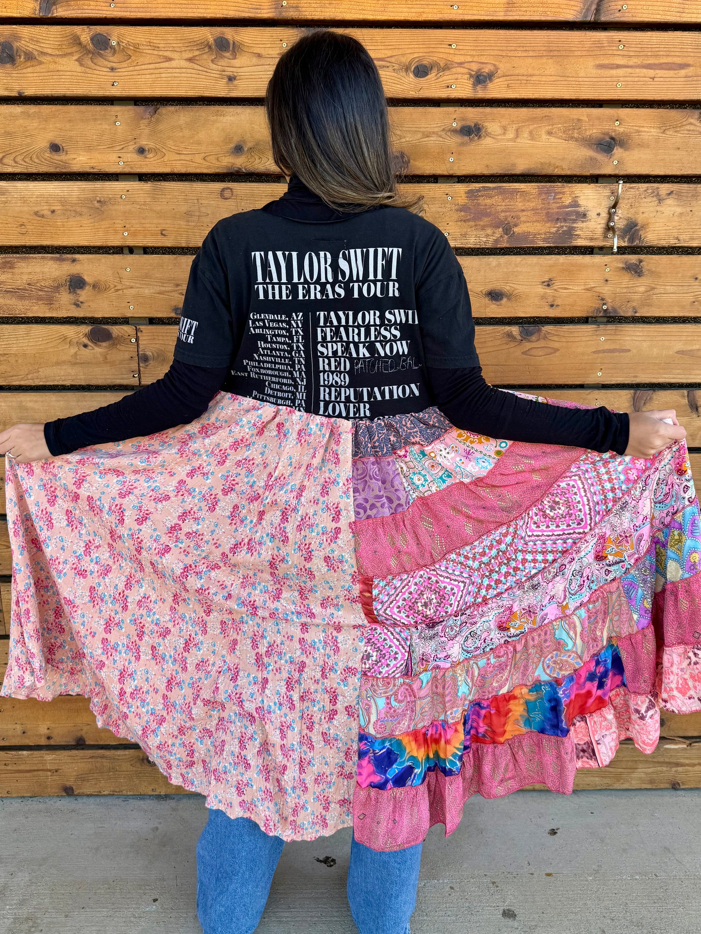 - All fabrics are hand arranged and cut into pieces to make a beautiful skirt.