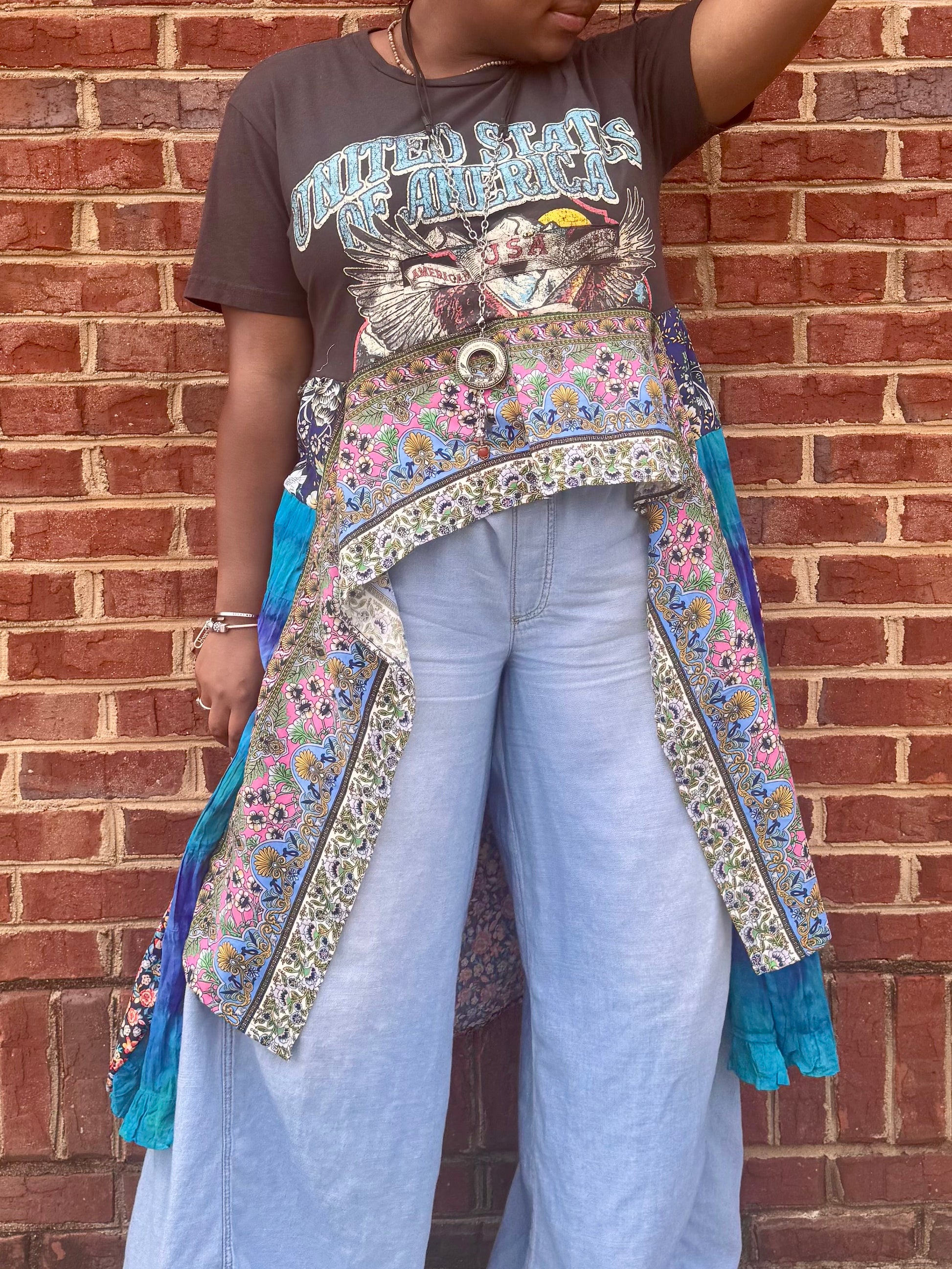 - All fabrics are hand arranged and cut into pieces to make a beautiful skirt.